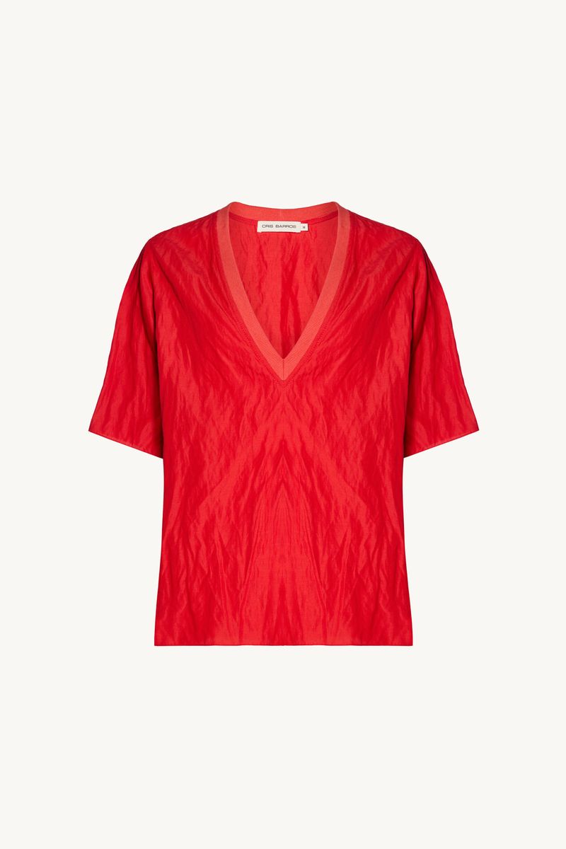 O top Boreal CRIS BARROS é basic e fun. De Marshmallow, viscose proveniente de manejo florestal sustentável com certificação FSC e tratada com produtos certificados OEKO-TEX , inofensivos para as pessoas e o meio ambiente.top em tecido marshmallow liso. Possui shape reto, decote V com aplicação de rib e mangas curtas. A peça possui estilo amassado, não pode ser passada.