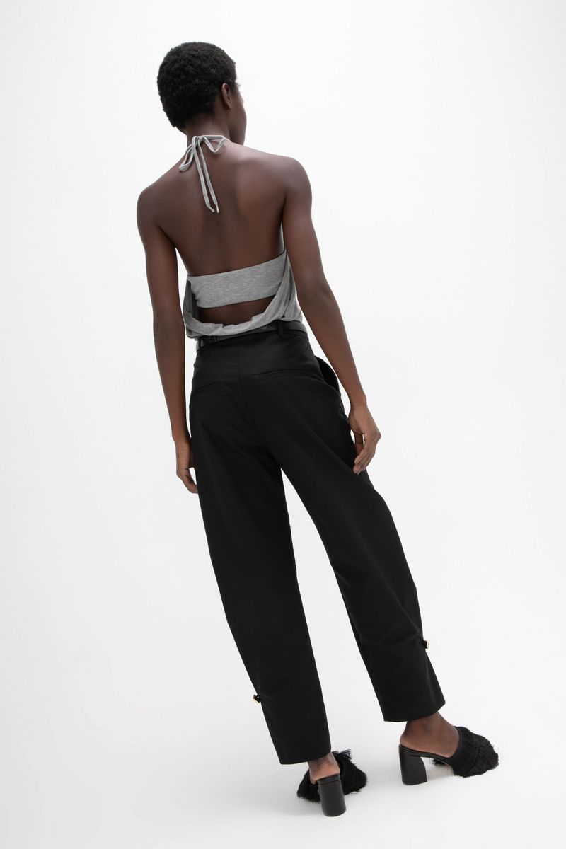 O top Carole CRIS BARROS é moderno e estiloso. De Odessa Mescla, nossa malha de viscose ultra fina, super confortavél para o dia a dia. Possui shape justo, frente única com alça fina para amarração, decote costas degagê e sutiã interno fixo aparente na parte posterior.
