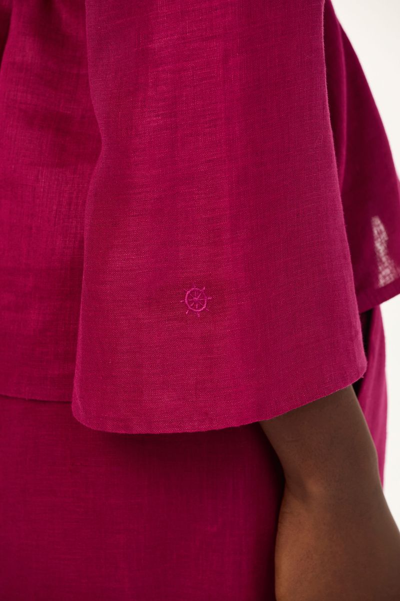 O top Cidra CRIS BARROS é fresh e descomplicado. De Patna, nosso linho puro, bem leve para o dia a dia e que possui certificação EUROPEAN FLEX e FSC, referente à conservação de florestas. Possui shape amplo, decote canoa, mangas longas e detalhe com bordados náuticos, de veleiro na manga esquerda e de timão na direita.