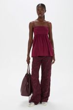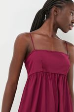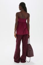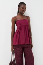 O top Cleo CRIS BARROS é De Eugênia, tecido misto, confortável com caimento leve e fluido, feito de fibra de origem renovável que possui a certificação TENCEL MODAL, garantindo manejo florestal sustentável e uma produção ecoeficiente. Possui shape acinturado, alças finas, decote reto, recorte abaixo do busto com franzidos, caimento evasê, comprimento alongado e fechamento por zíper lateral.