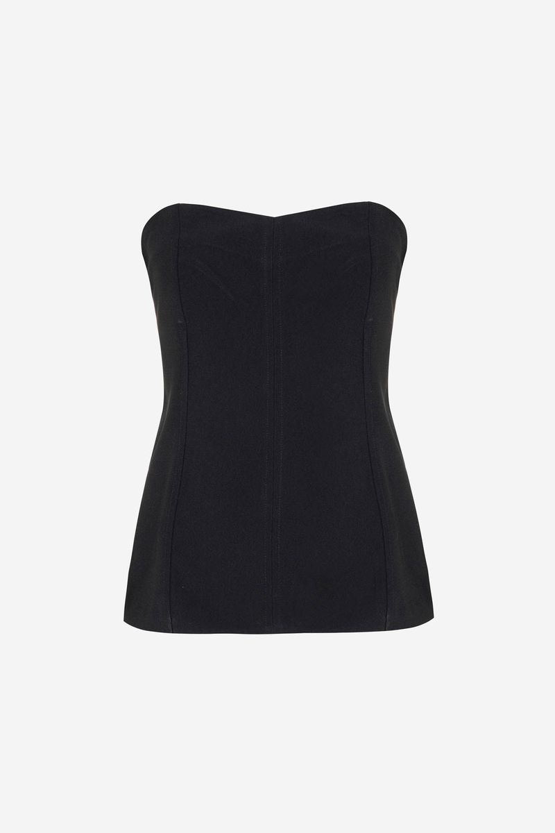 O top Cristiana CRIS BARROS é elegante e estiloso. De Avalon, nosso tecido clássico, encorpado e fluido, perfeito para alfaiataria e que possui certificação FSC, com maior responsabilidade ambiental, suas fibras são feitas a partir do manejo sustentável de áreas reflorestadas. Possui shape sem alças, estruturado com pences na parte frontal para acinturar e modelar o corpo e lastex posteriores para garantir o comforto e caimento perfeito.