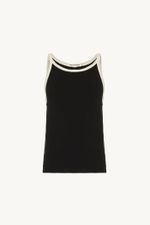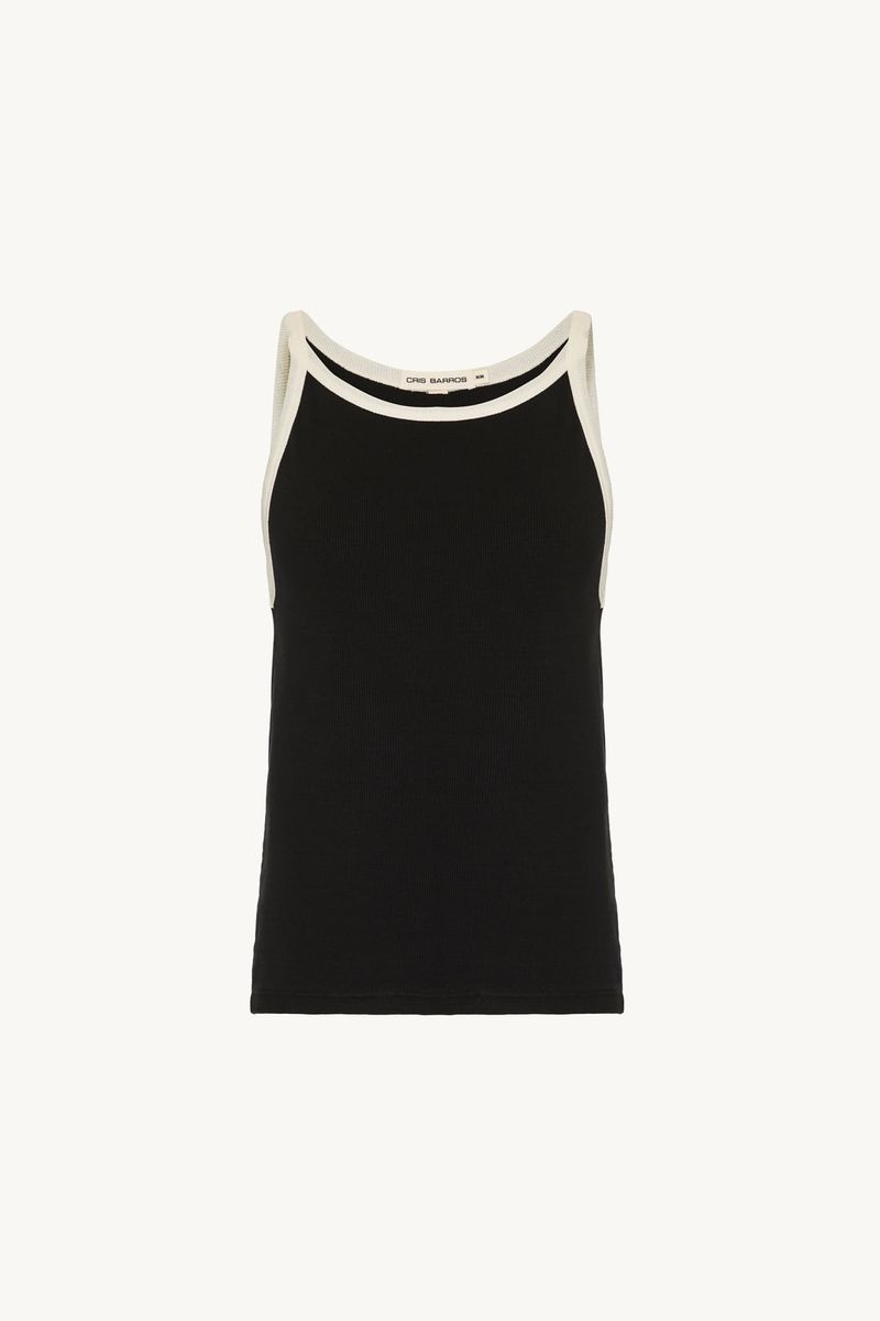 O top Dalia CRIS BARROS é básico e cool. De Rib, malha canelada de algodão penteado com elastano que proporciona toque macio e conforto. Possui fibras com certificação sustentável ABR, que são tecidos produzidos seguindo crité rios corretos de sustentabilidade. Possui shape justo e decote halter contrastante.