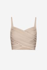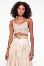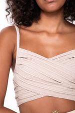 O top Devora CRIS BARROS é um coringa with a twist. O efeito plissado do tricot, garante bossa à peça, que conta tambem com shape cropped, decote frontal transpassado e alças finas.