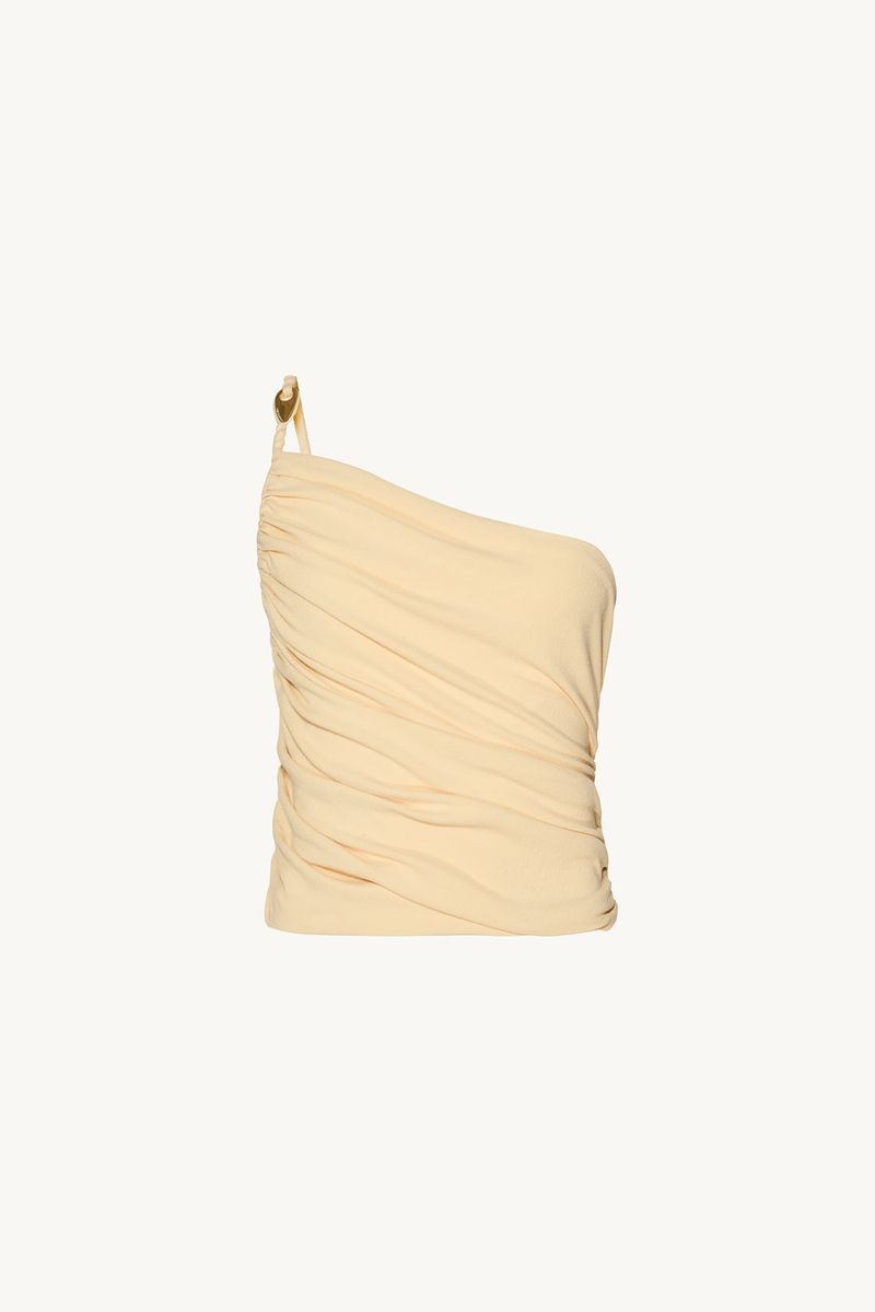 O top Ebano CRIS BARROS é um básico with twist. De Marjorelle, nossa clássica malha creponada de toque macio que garante muito conforto e sofisticação,feito com fibra de origem natural que possui a certificação LENZING ECOVERO garantindo uma produção com baixos impactos ambientais. Possui shape cropped de um ombro só, pregas com franzidos no corpo, zíper invisível lateral e detalhe na alça de aviamento jóia gota, banhado à ouro, design exclusivo desenvolvido em nosso atelier.