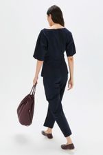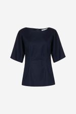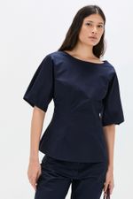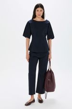 O top Eirene CRIS BARROS é chique e atemporal. De Tripoli, nosso algodão encorpado com elastano, super confortável para uso diário. Possui shape acinturado estruturado, decote canoa e mangas curtas e abauladas.