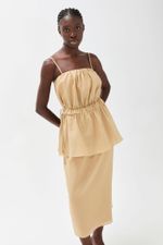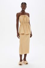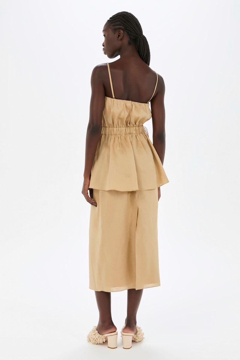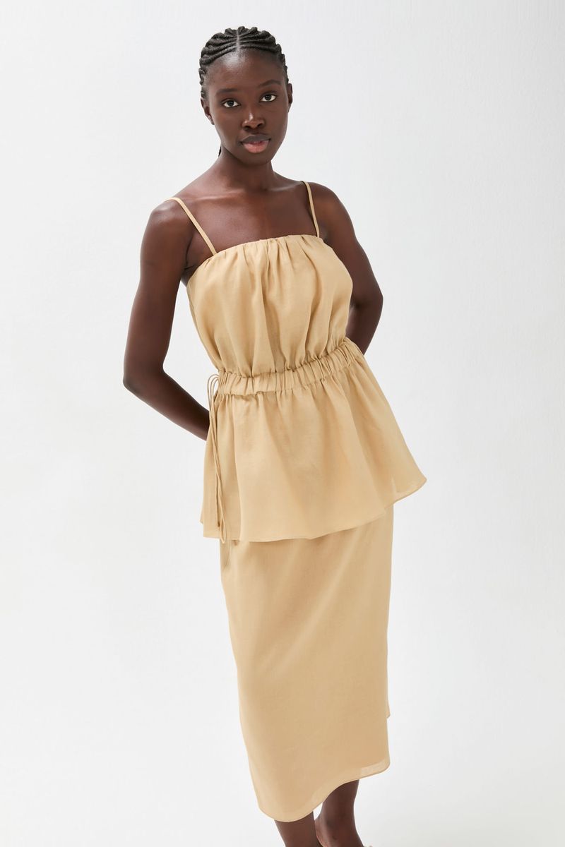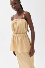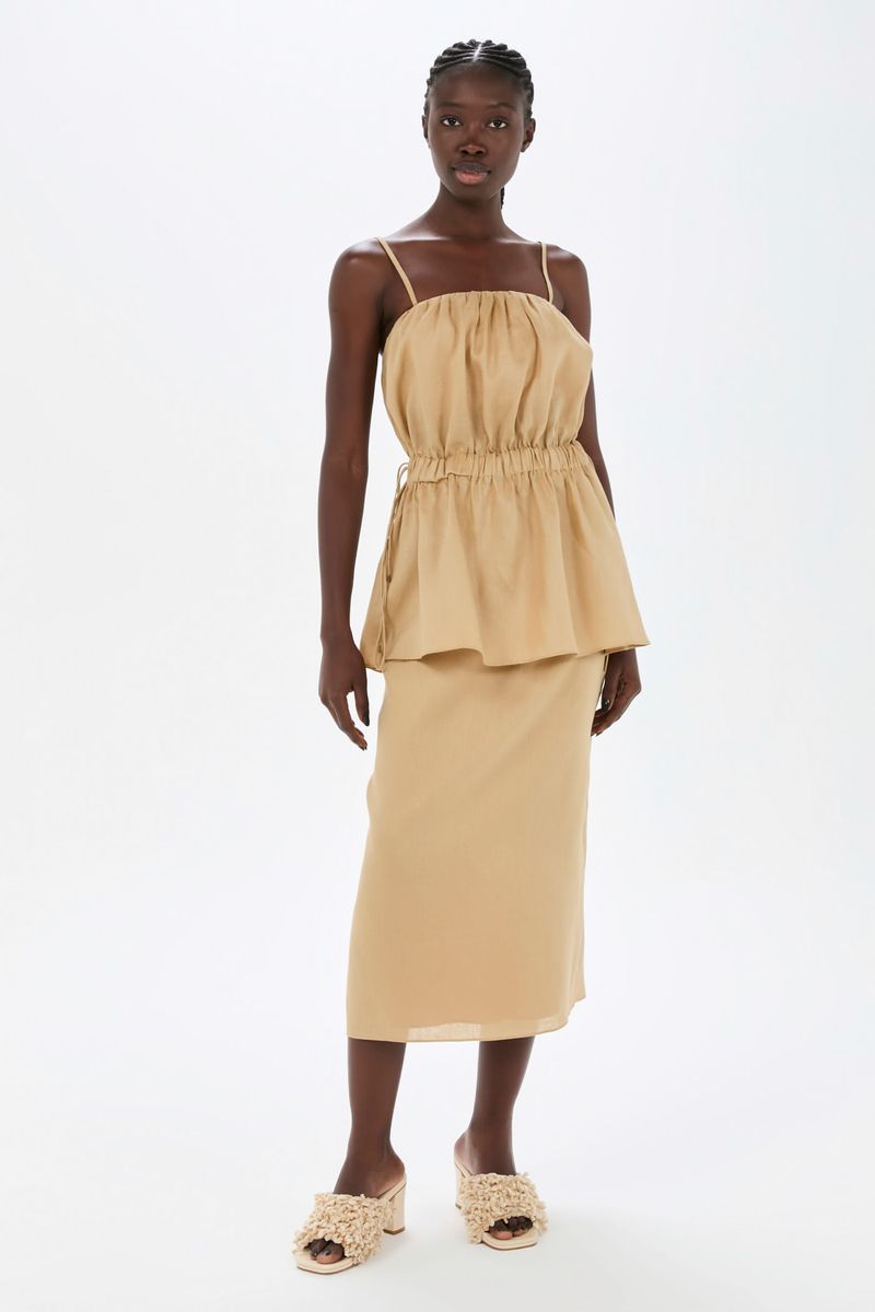 O top Elba CRIS BARROS é fresh e cool. De Patna, nosso linho puro, bem leve para o dia a dia e que possui certificação EUROPEAN FLEX e FSC, referente à conservação de florestas. Possui shape amplo, decote reto com pregas, alças finas, cintura marcada com elástico e rolote para amarração e barra com caimento evasê. Dica de styling: Use sem alças.