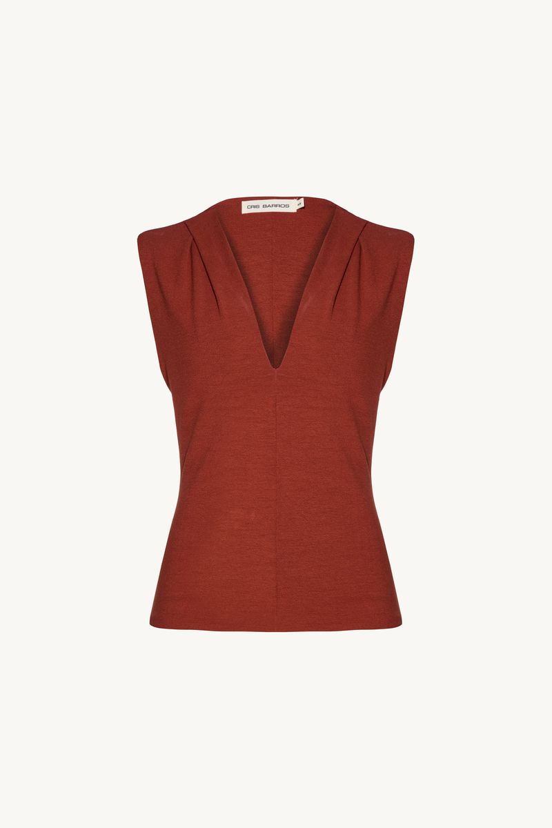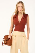 O top Elvira CRIS BARROS é básico e atemporal. De Marjorelle, nossa clássica malha creponada de toque macio que garante muito conforto e sofisticação, feito com fibra de origem natural que possui a certificação LENZING ECOVERO garantindo uma produção com baixos impactos ambientais. Possui shape justo, alças largas, pregas nos ombros e decote V.