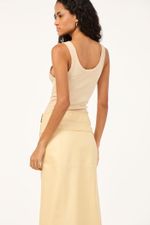 O top Herba CRIS BARROS é um básico must have. De Rib, malha canelada de algodão penteado com elastano que proporciona toque macio e conforto. Possui fibras com certificação sustentável ABR, que são tecidos produzidos seguindo critérios corretos de sustentabilidade. Possui shape justo e decote redondo.