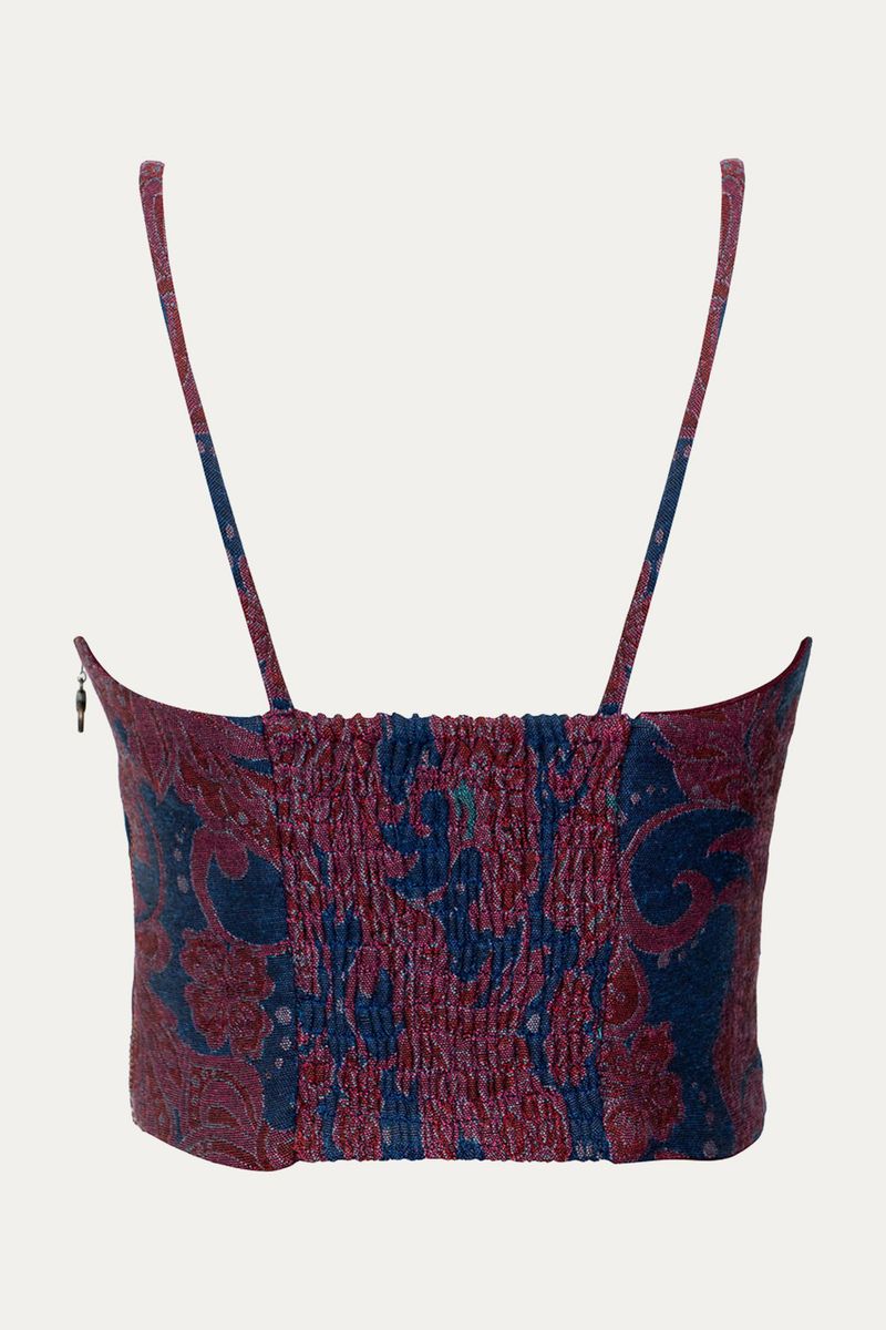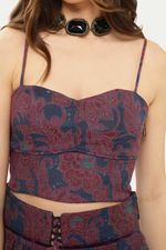 Top de modelagem cropped, com decote coração e detalhe de lastex nas costas.