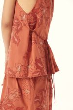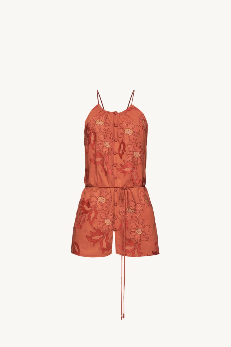 O Top Joie traduz um statement moderno, onde artesania e linhas contemporâneas se encontram com precisão. Confeccionado em Acacia, tecido de algodão bordado com flores e folhas orgânicas, construídas a partir de diferentes pontos que criam variações de textura; a botânica dos jardins orientais encontra o olhar decorativo do Ocidente, evocando os interiores de Renzo Mongiardino, onde natureza, ornamento e arquitetura convivem em equilíbrio através de uma leitura gráfica. O decote americano com rolotes Isadora desenha a parte superior com detalhe sutil, enquanto o rolotê de amarração na cintura permite ajuste, e as azelhas com botões forrados na vista finalizam a construção com savoir-faire, evidenciando a assinatura CRIS BARROS.