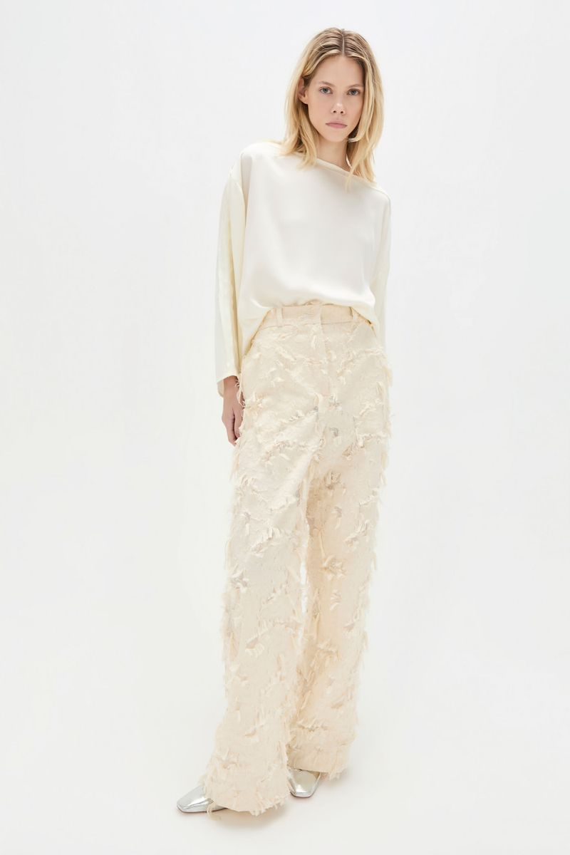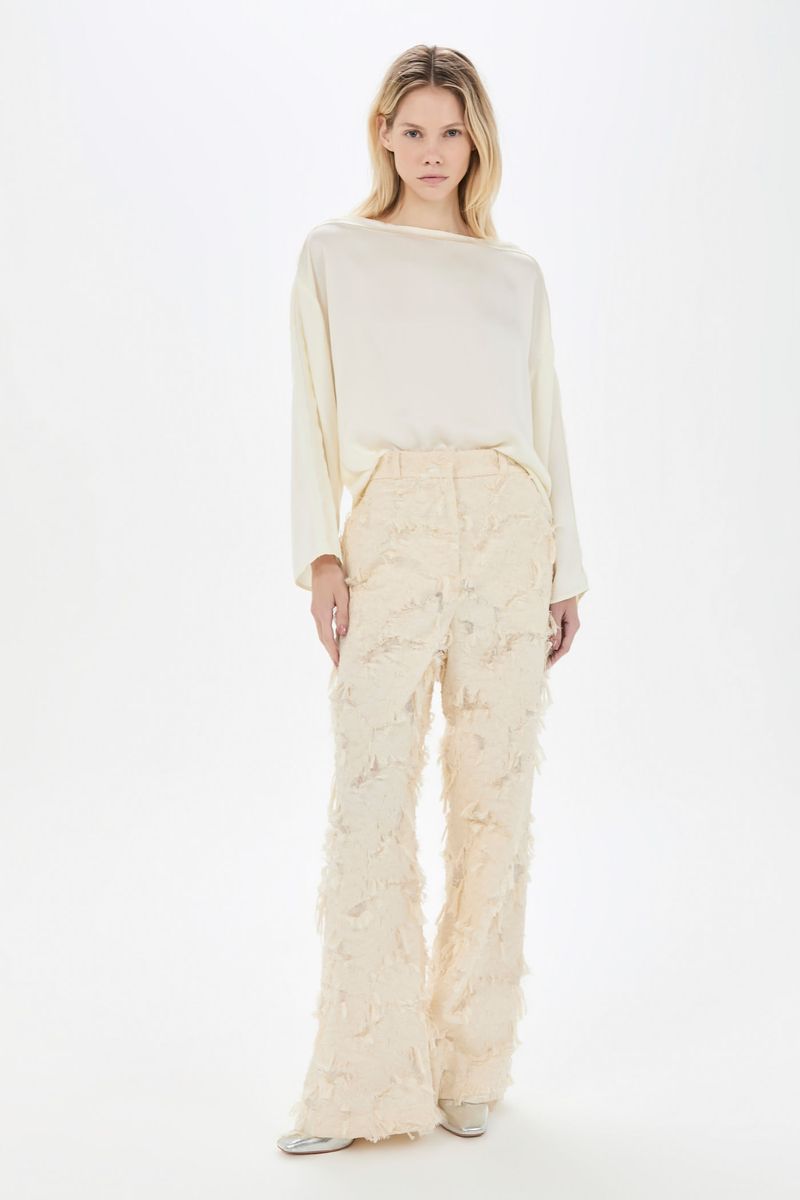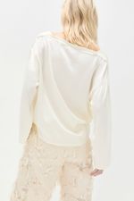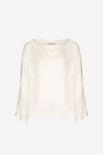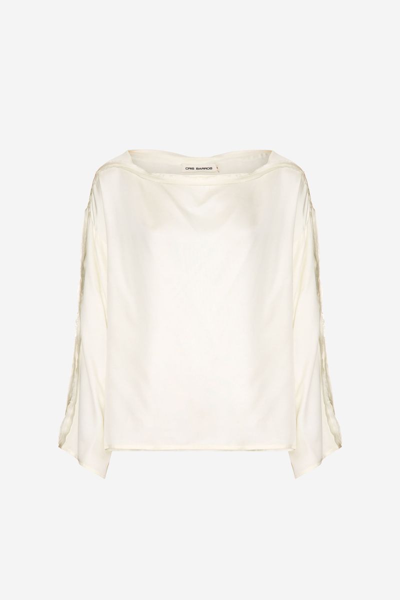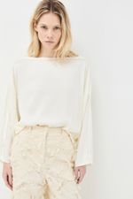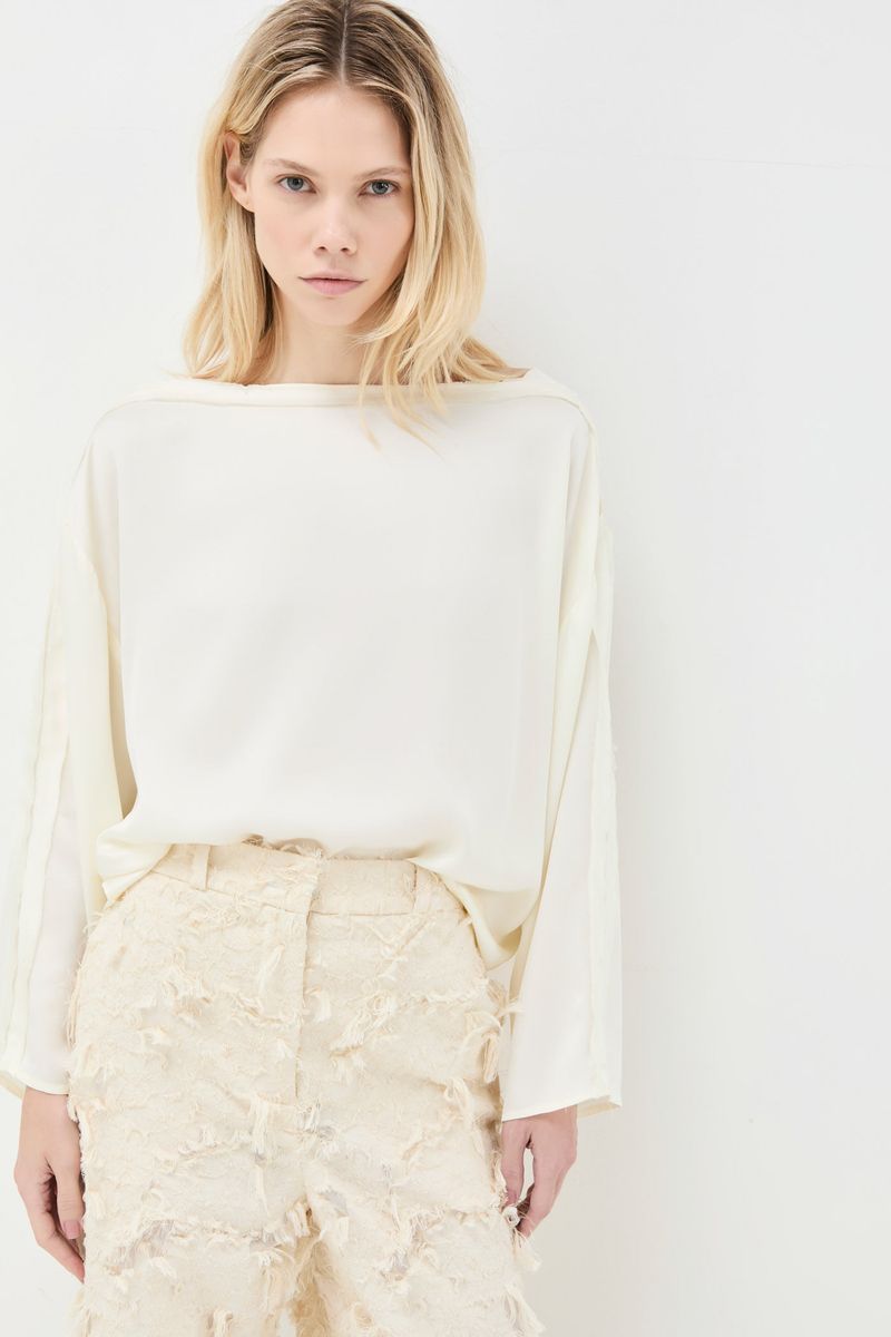 O top June CRIS BARROS é básico e chique. De Isadora, tecido de viscose sustentável, fibra natural extraída das árvores, leve e fluído, ideal para clima tropical brasileiro.top em tecido isadora liso. Possui shape amplo, decote canoa com viés desfiado, sem cava e mangas longas e amplas.