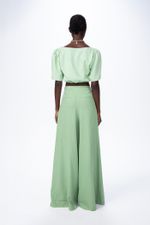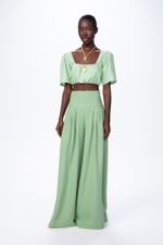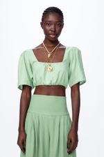 O top Kiara CRIS BARROS é fresh e moderno. De Jaipur, tecido de fibras naturais com caimento leve e fluido. Possui shape cropped, decote quadrado, busto e mangas, estruturadas curtas, com detalhes franzidos, além de zíper lateral invisível.