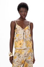 O top Mabelle CRIS BARROS é alegre e sofisticado. De Tessália, linho com bordado floral riquissimo em detalhes, trazendo diferentes tipos de arranjos coloridos. Possui shape regata, decote V com prega e alças finas. Dica de styling: Combine com a calça Valerie.