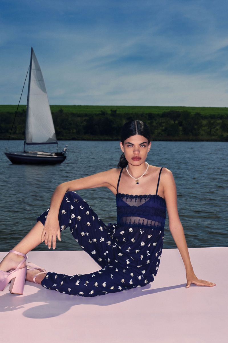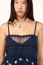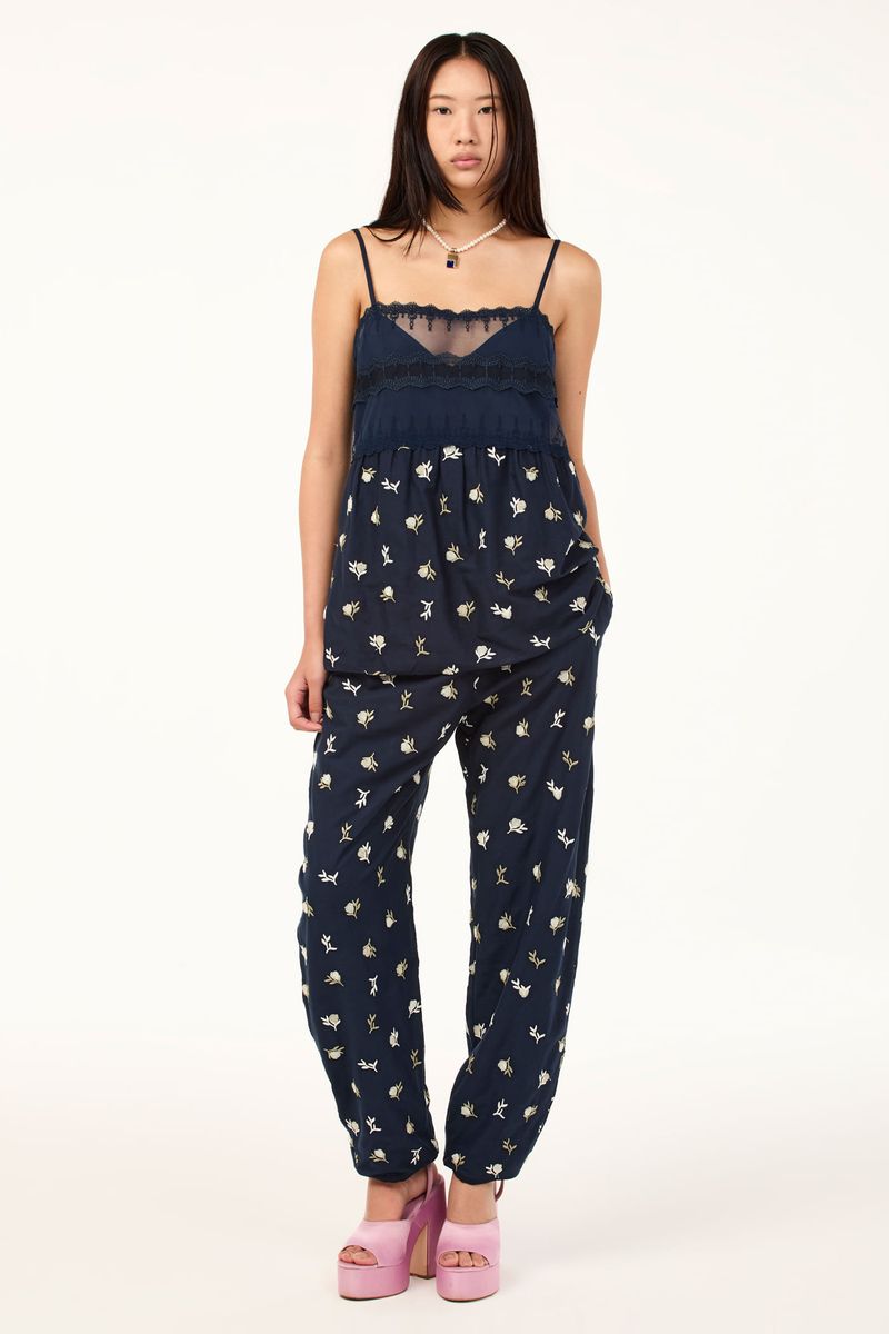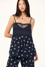 O top Malu CRIS BARROS é romântico e delicado. De Bosque, voil 100% algodão, bordado com mini flores de textura atoalhada. Possui shape evasê, decote reto, alças finas e mix de entremeios na região do busto.