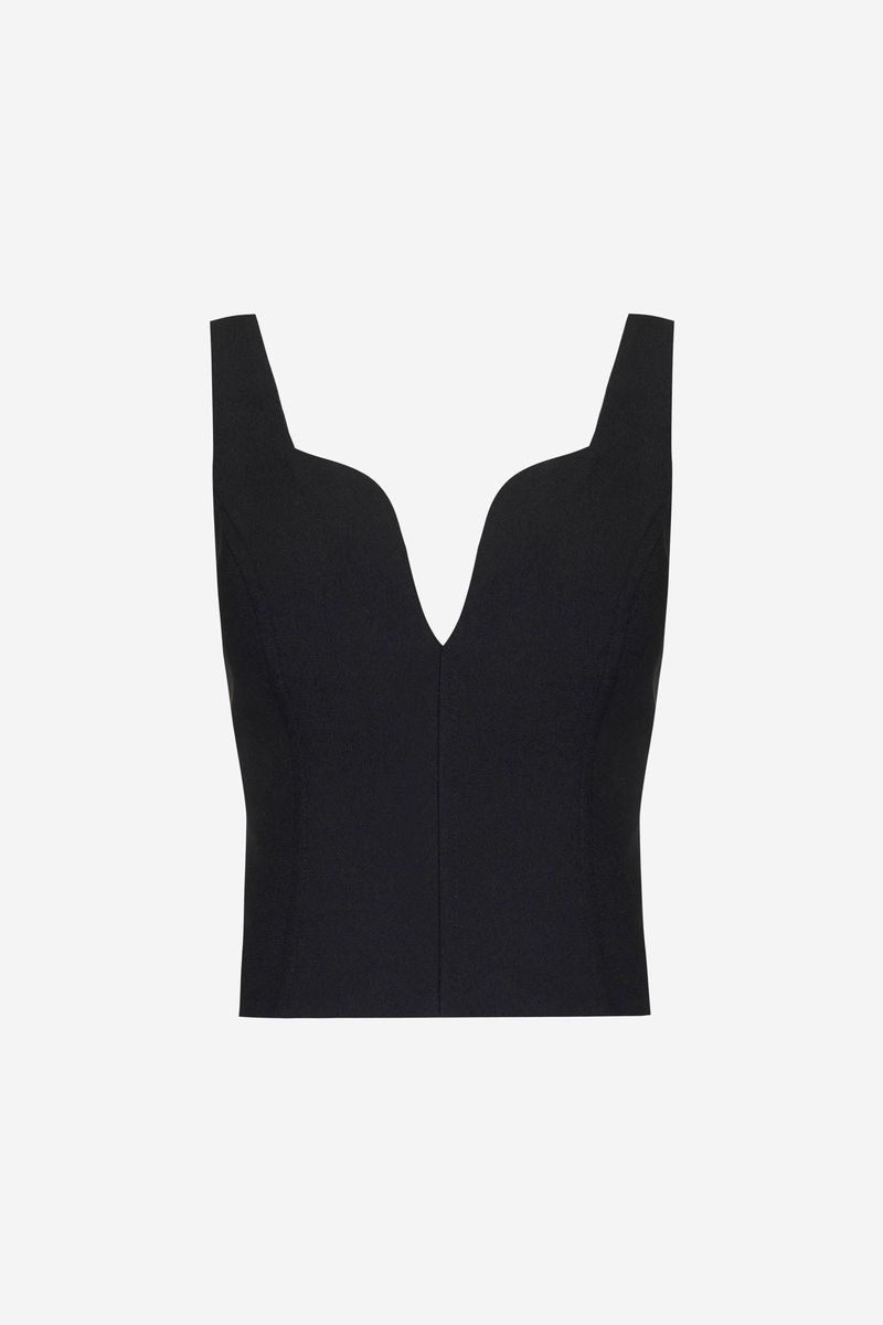 O top Marta CRIS BARROS é o perfeito equilíbrio entre o delicado e o arquitetônico. Feito de avalon, tecido encorpado, possui modelagem corpete e decote princesa com recortes, alças largas, ziper lateral e elastico na costas. É uma peça coringa para um guarda roupa cheio de estilo.