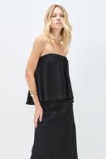 O top Melina CRIS BARROS é fashionista e elegante. De Avalon, nosso tecido clássico, encorpado e fluido, perfeito para alfaiataria e que possui certificação FSC, com maior responsabilidade ambiental, suas fibras são feitas a partir do manejo sustentável de áreas reflorestadas.top de tecido avalon. Possui shape alongado assimé trico, alças finas e pregas no região do decote. Dica de styling: Use sem alças.