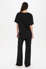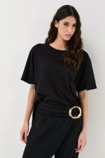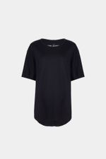 O top Mitchell CRIS BARROS é um básico cool. De malha. Possui shape t-shirt reta, decote careca, mangas curtas, comprimento alongado, fendas laterais, barra fraldada e detalhe de gorgurão tinto na cor da peça costurado nas laterais.