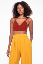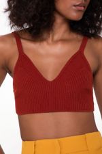 O top Moema CRIS BARROS é básico e atemporal. Curtinho, de tricot, possui alças largas e decote V. Perfeito para usar em baixo de camisas ou casacos.