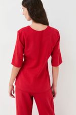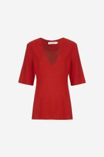 O top Nagoya CRIS BARROS é chique e atemporal. De Jacarta, tecido que tem em seu tramado, mix de linho encorpado e viscose, extraído de fibras de madeira de reflorestamento e tem uso consciente de água na sua fabricação, garantindo um ciclo de reaproveitamento responsável. É o equilíbrio perfeito entre frescor e conforto. Possui shape estruturado com pences, modelando o corpo, mangas curtas e decote V.