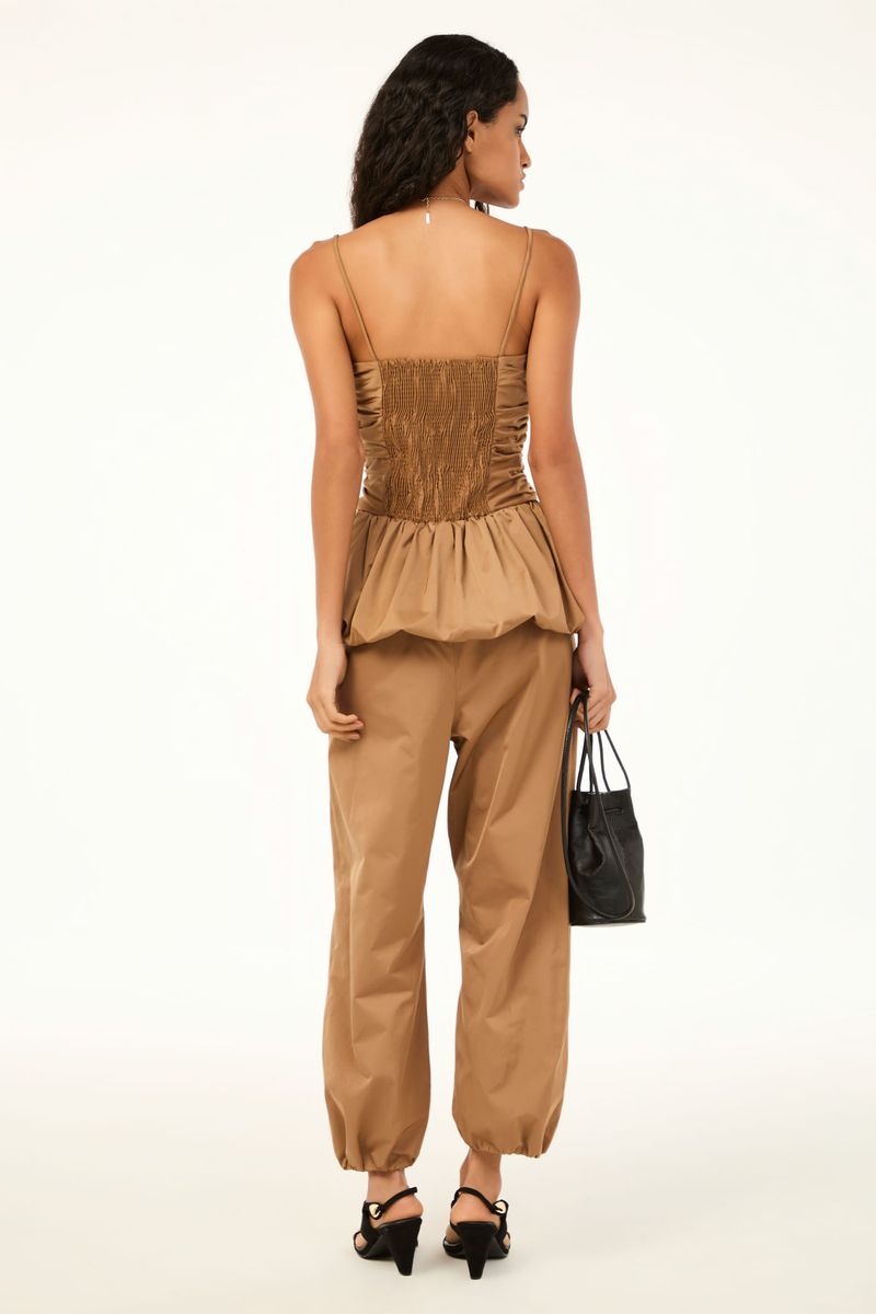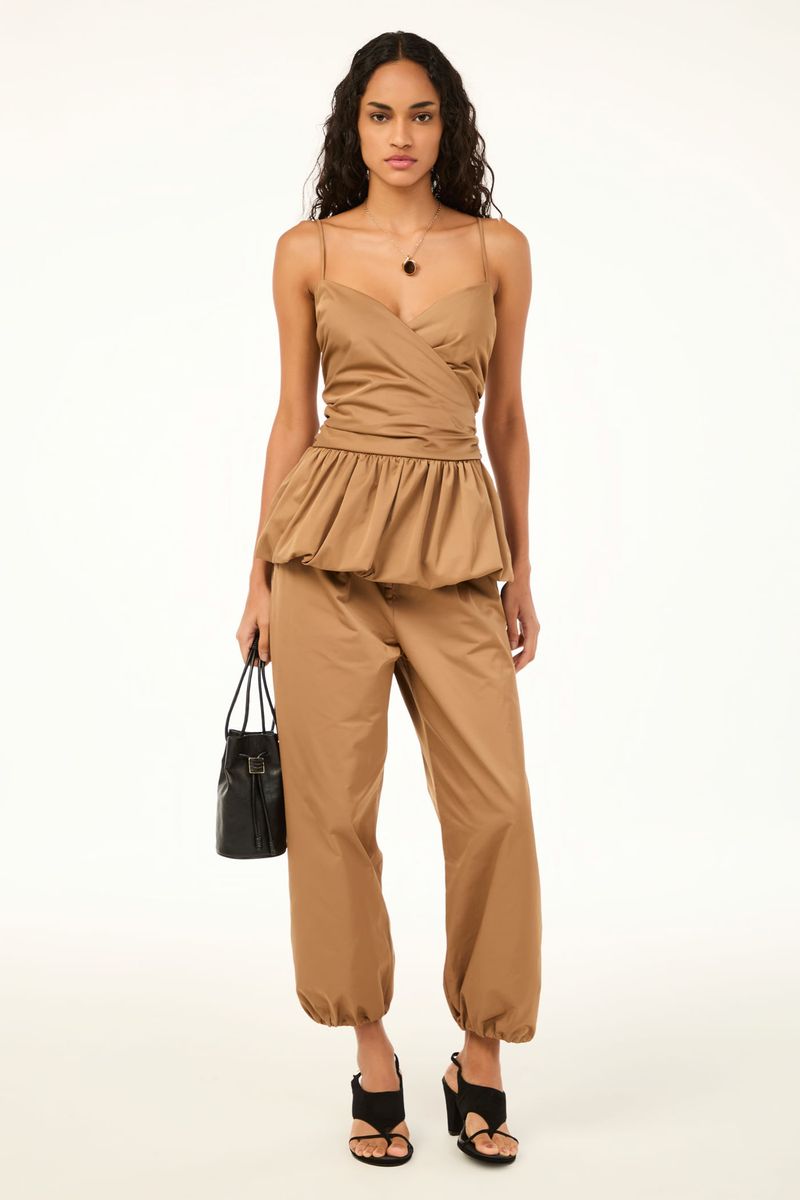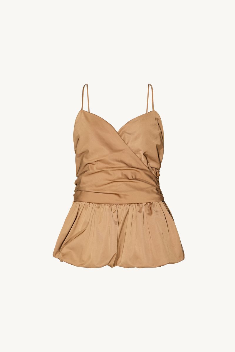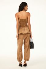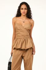 O top Nora CRIS BARROS é cool e elegante. De Lina, tecido misto de algodão, leve e sarjado com caimento preciso e único. Possui shape justo, corpo transpassado e franzido, decote coração, alças finas, cintura marcada e barra balonê.