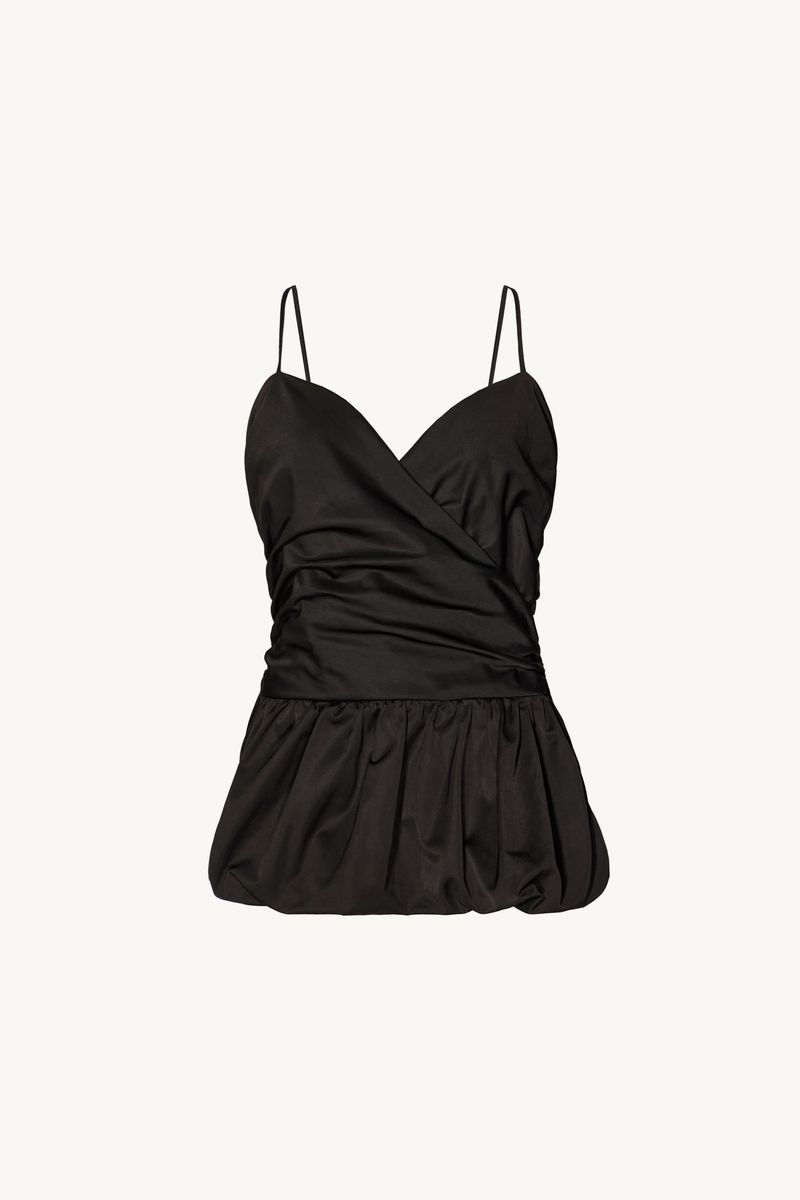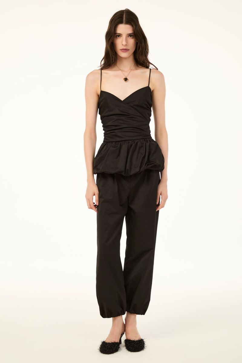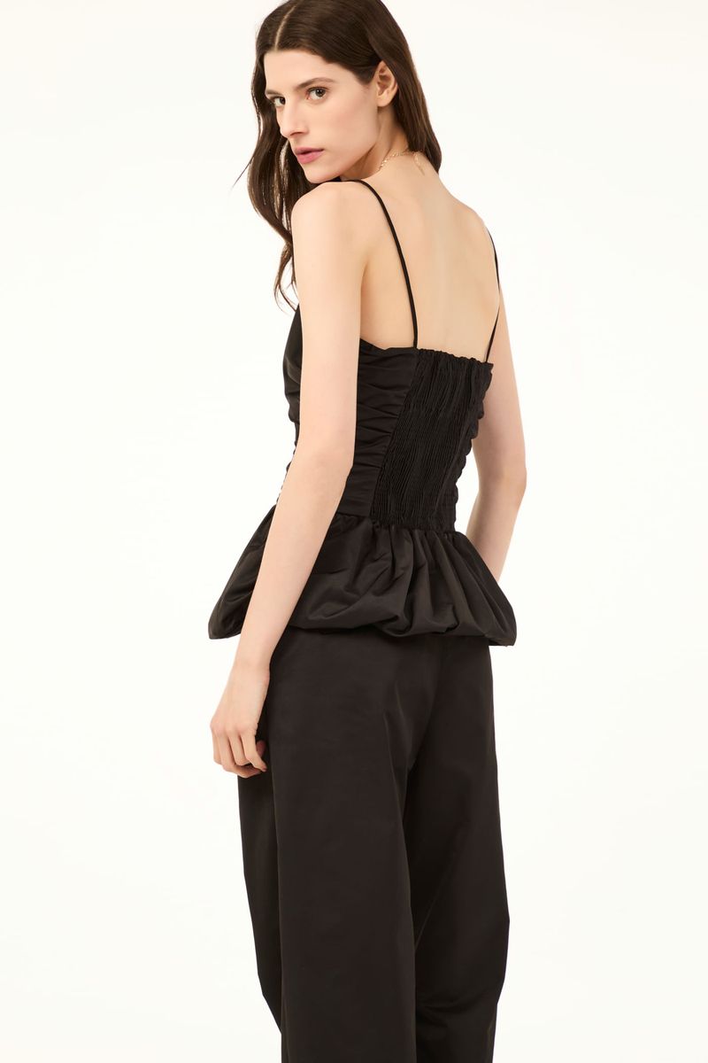 O top Nora CRIS BARROS é cool e elegante. De Lina, tecido misto de algodão, leve e sarjado com caimento preciso e único. Possui shape justo, corpo transpassado e franzido, decote coração, alças finas, cintura marcada e barra balonê.