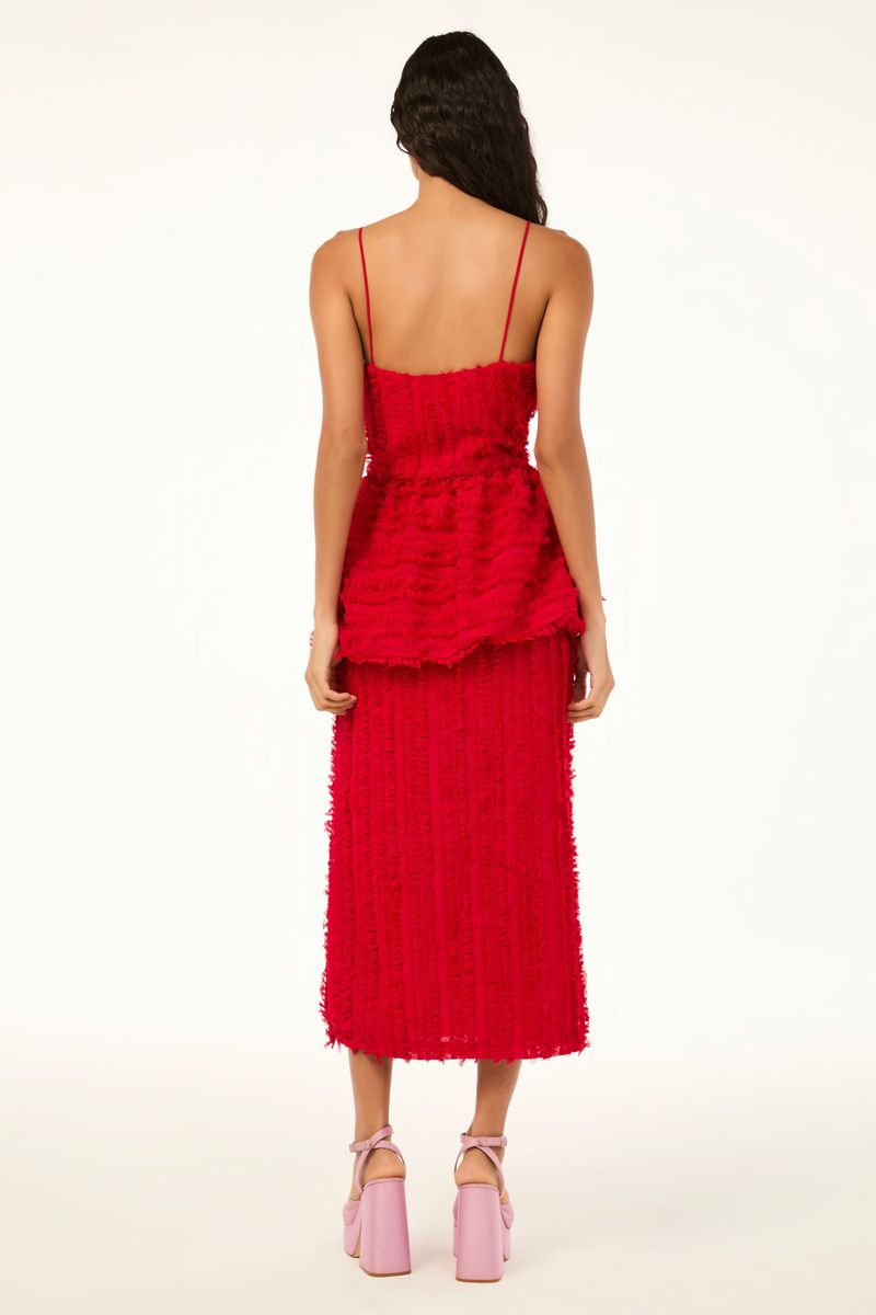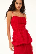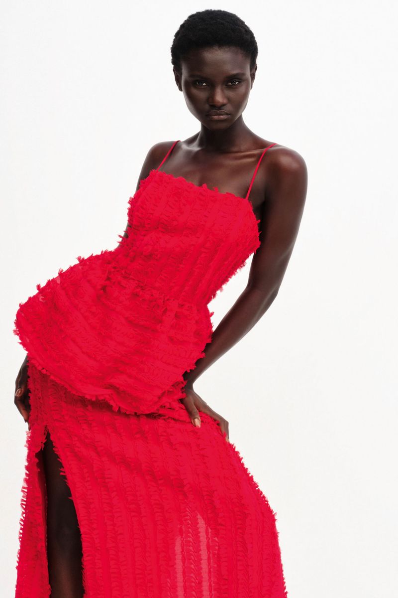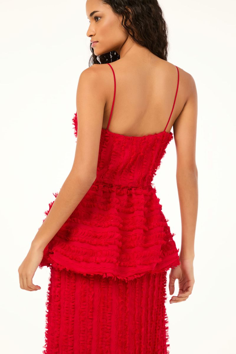 O top Paloma CRIS BARROS é estiloso e elegante. De Enlace, tecido fluido, bordado com fitas retorcidas criando efeito de laços e nós. Possui shape e decote retos, alças finas, recorte na cintura e barra balonê.