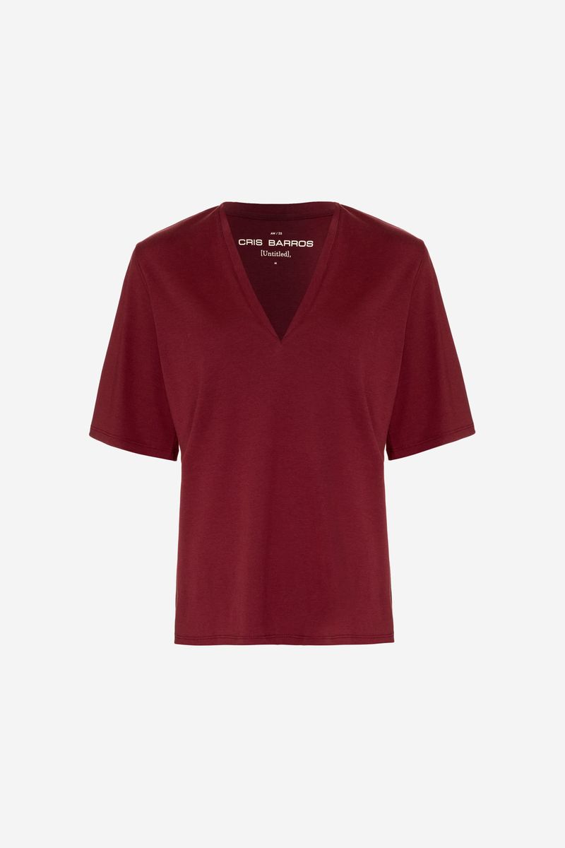 O top Polaris CRIS BARROS é um básico indispensável. De malha. Possui shape t-shirt reta, decote V e mangas curtas.