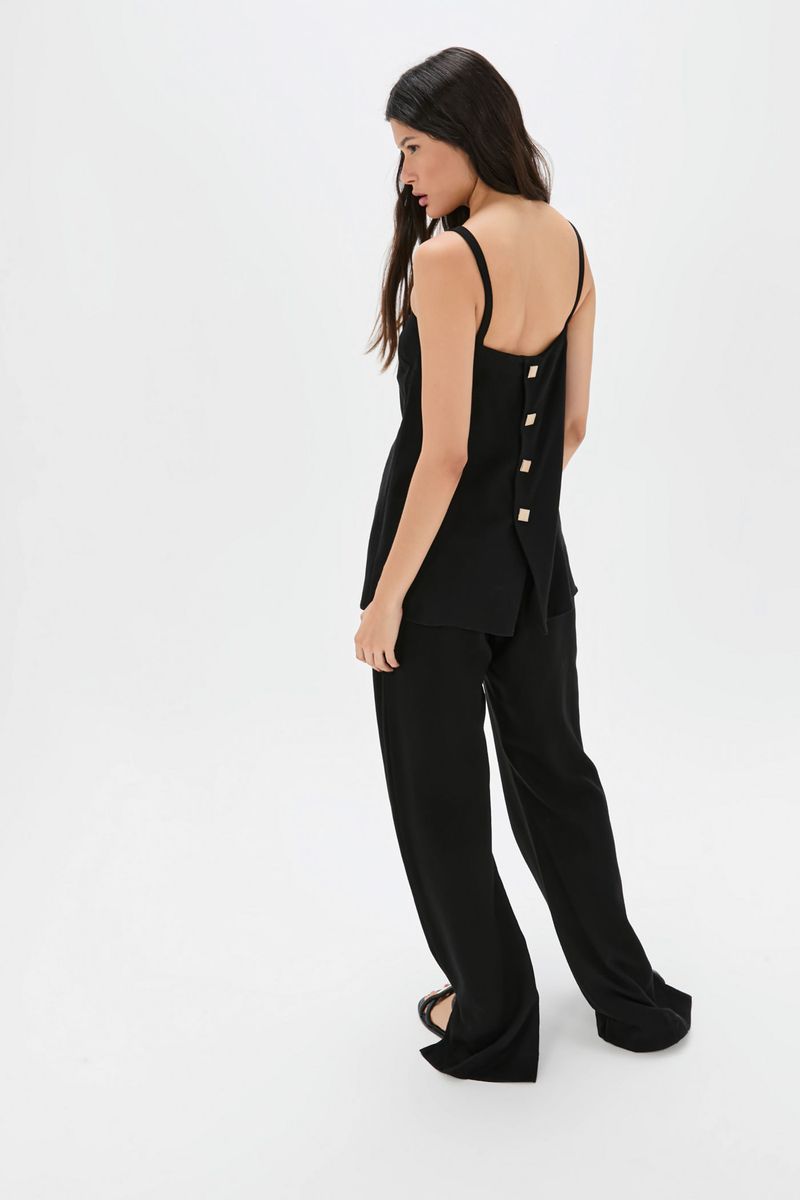 O top Rhea CRIS BARROS é um básico with a twist. De Jacarta, tecido que tem em seu tramado, mix de linho encorpado e viscose, extraído de fibras de madeira de reflorestamento e tem uso consciente de água na sua fabricação, garantindo um ciclo de reaproveitamento responsável. É o equilíbrio perfeito entre frescor e conforto. Possui shape e decote retos, alças largas, caimento evasê e detalhe inusitado posterior com botões jóias, design exclusivo, desenvolvido em nosso atelier, que trazem bossa à peça.