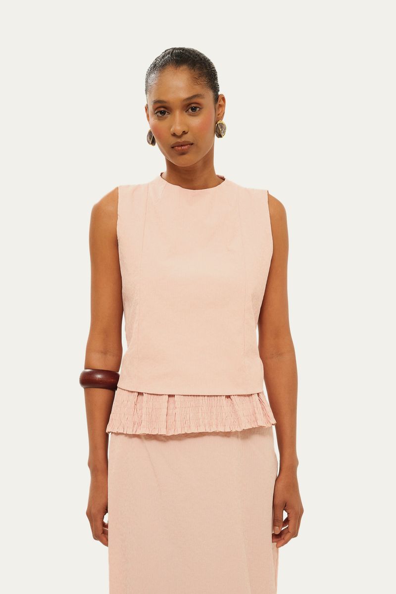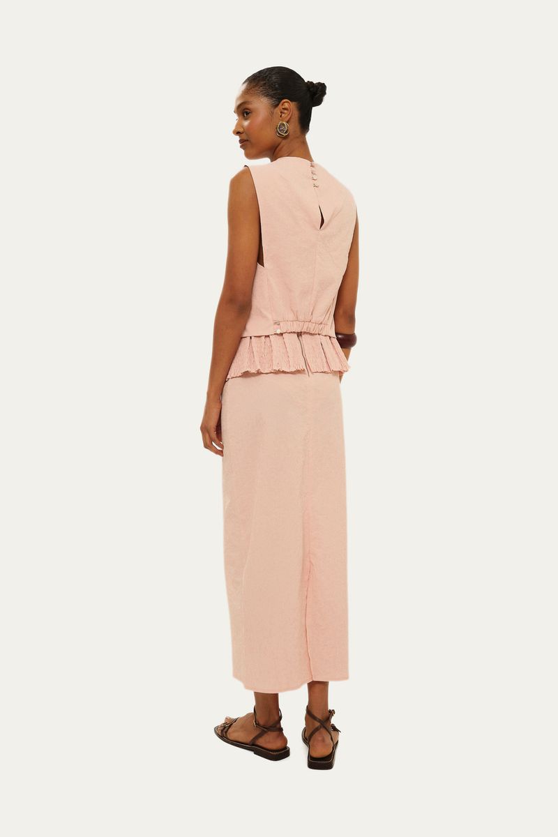 *Produto comercializado e enviado por Gaitee.Sem manga. Fechamento em gota com botão madrepérola. Elástico na cintura e botões nas laterais.