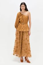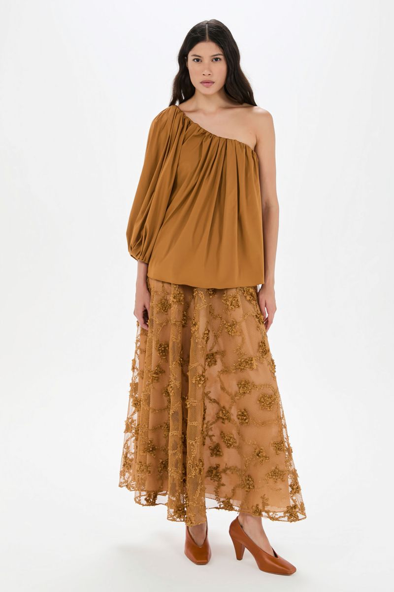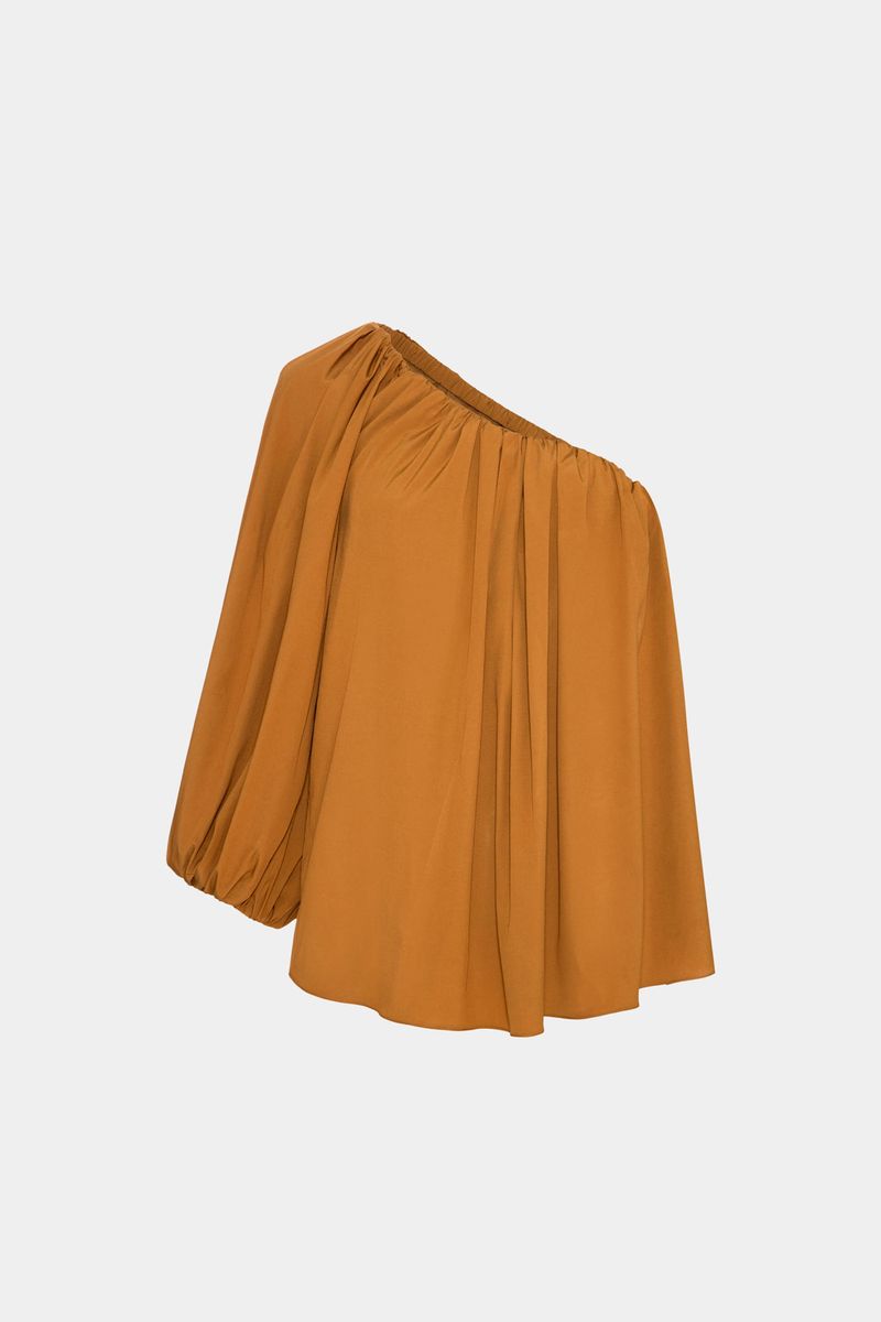 O top Samoa CRIS BARROS é elegante e estiloso. De Eugênia, tecido misto, confortável com caimento leve e fluido, feito de fibra de origem renovável que possui a certificação TENCEL MODAL, garantindo manejo florestal sustentável e uma produção ecoeficiente. Possui shape com um ombro só, levemente franzido no decote e na manga 3/4 volumosa.