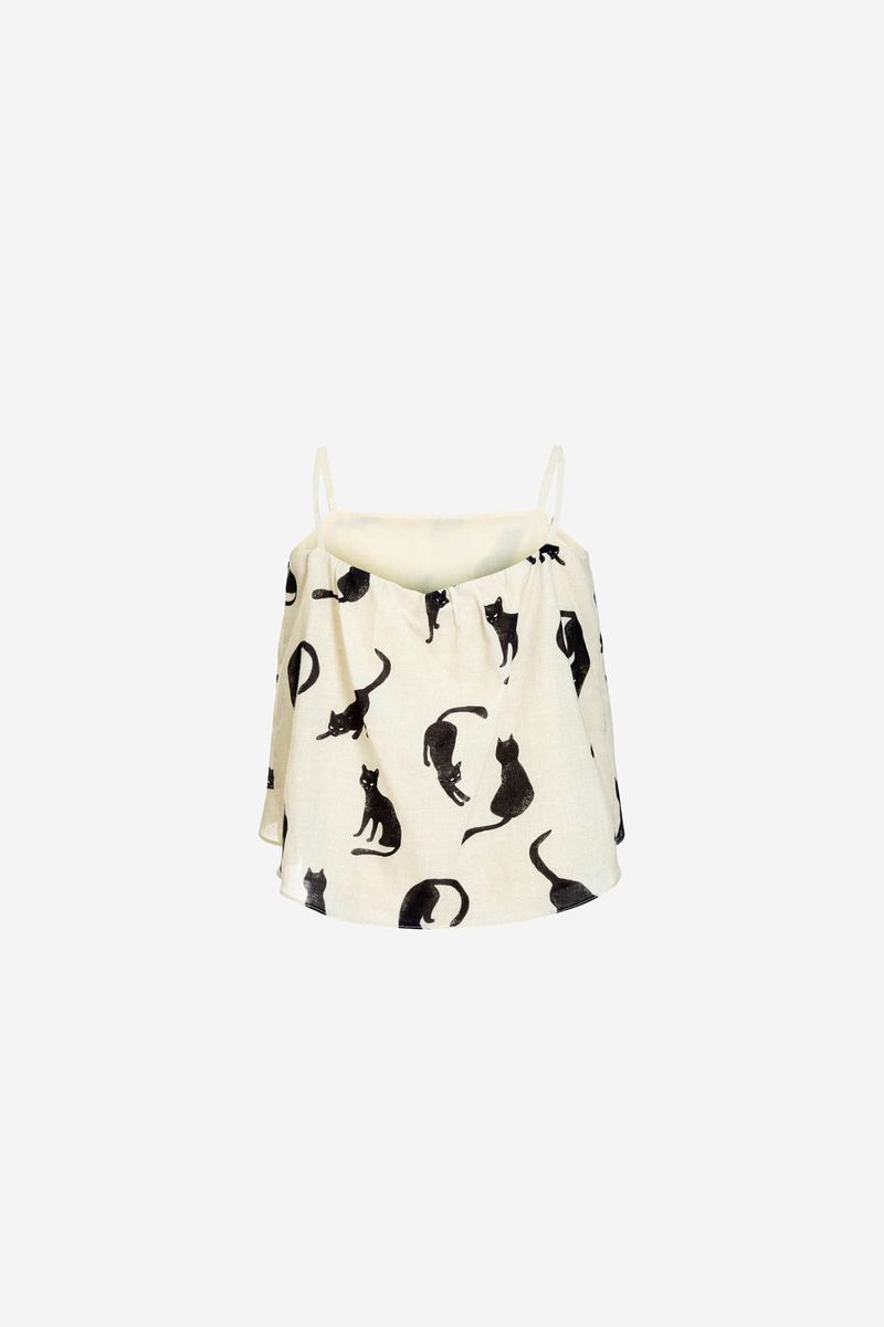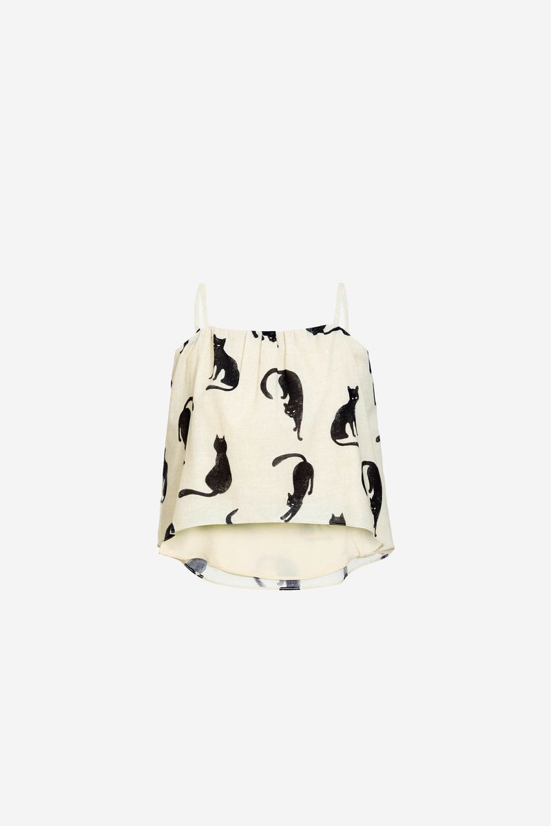 O top Selene mini CRIS BARROS é super cool. De Lavinia, tecido 100% algodão, leve e versátil para deixar as pequenas livres, traz estampa exclusiva Kitty, desenvolvida em nosso atelier.blusa na estampa localizada minério top pinoli. Possui shape reto, alças finas e parte posterior mais alongada. Dica de styling: Combine com a saia Helen CRIS BARROS mini.