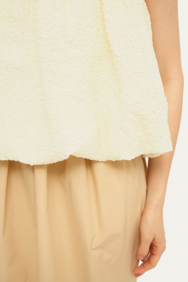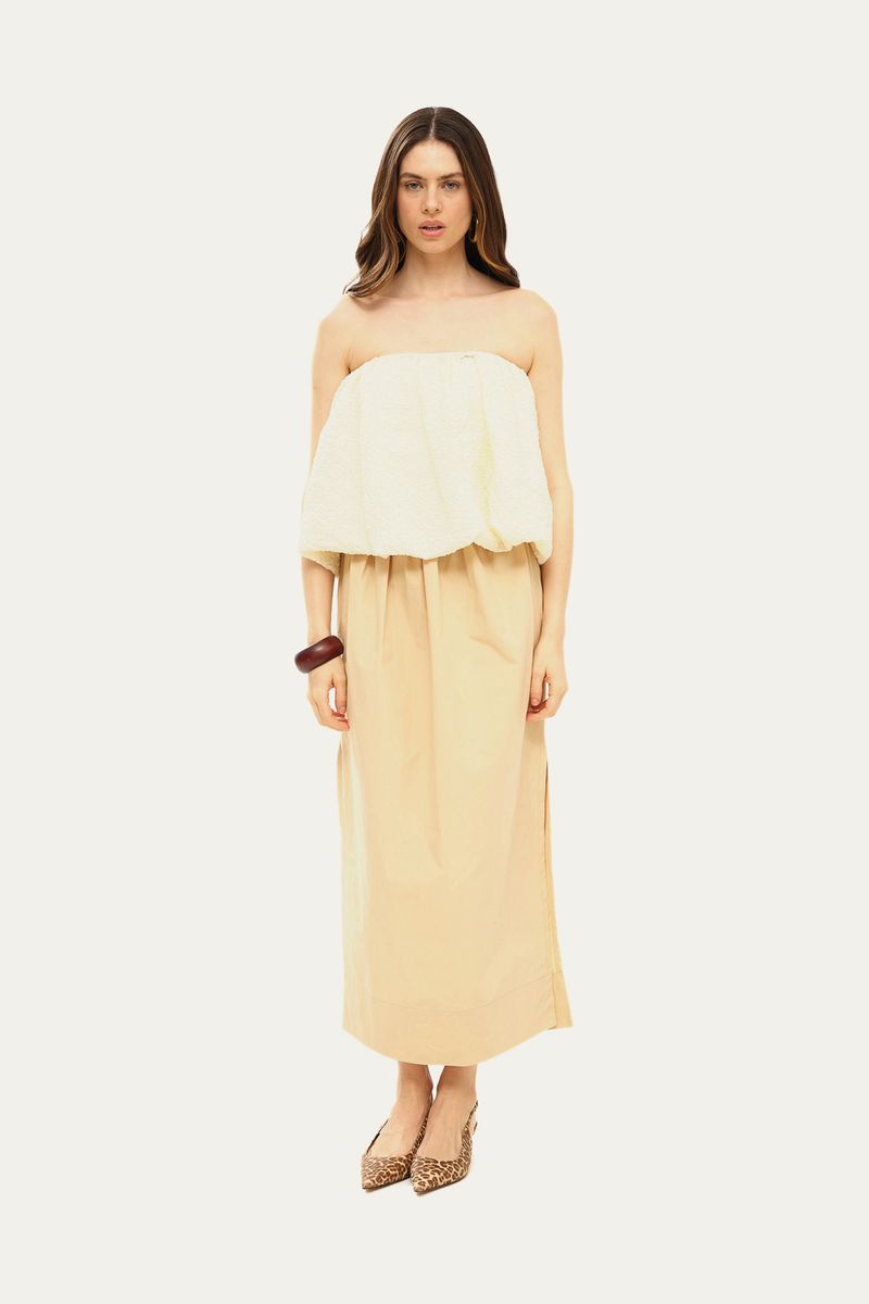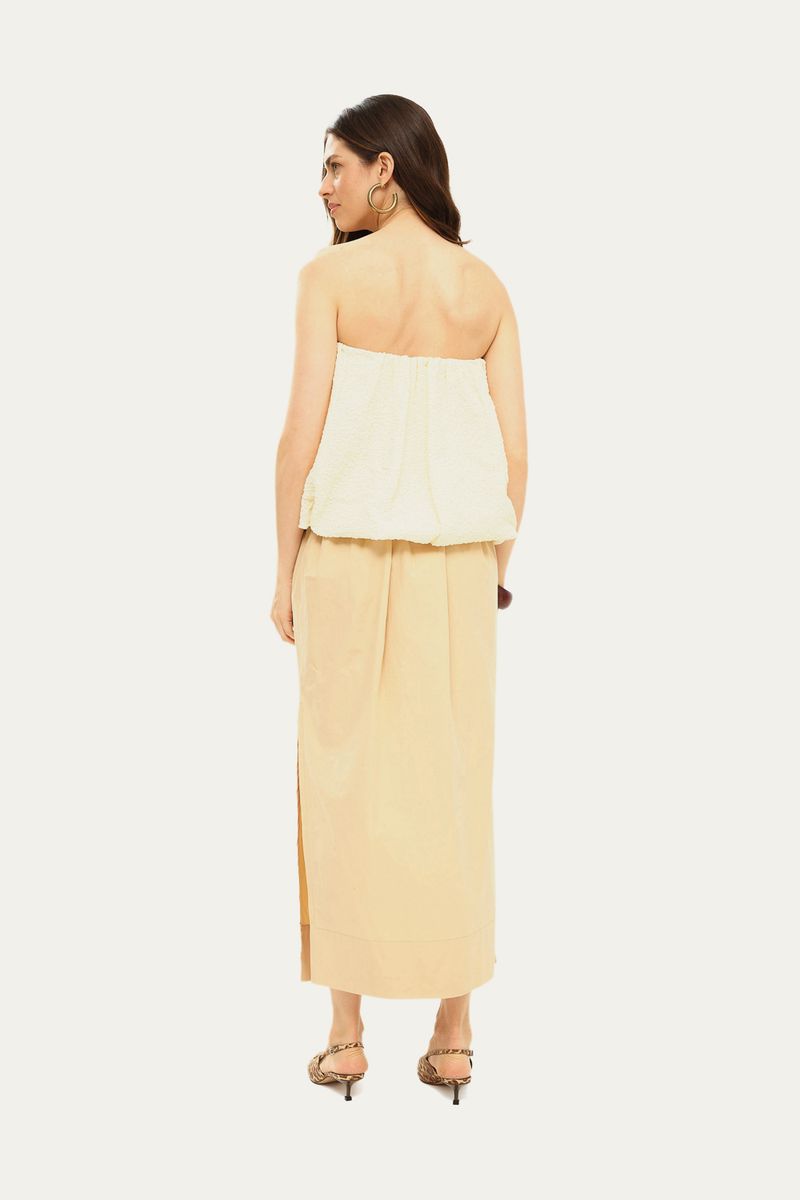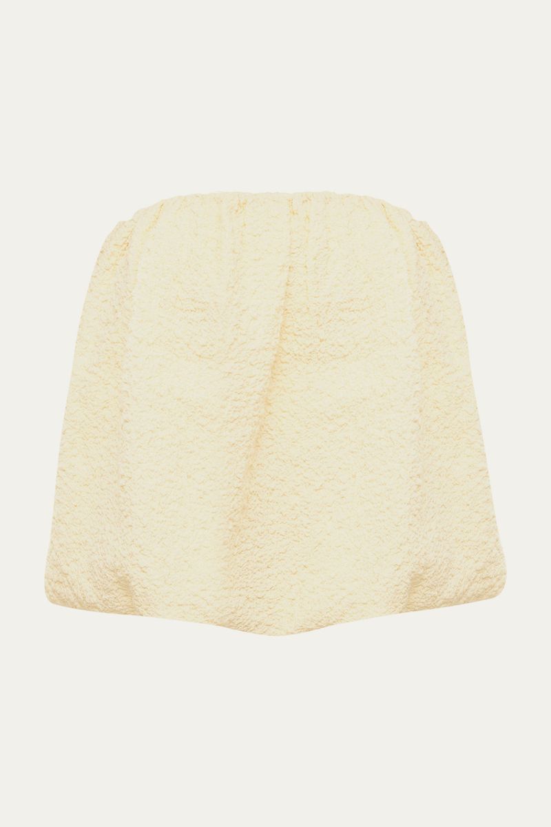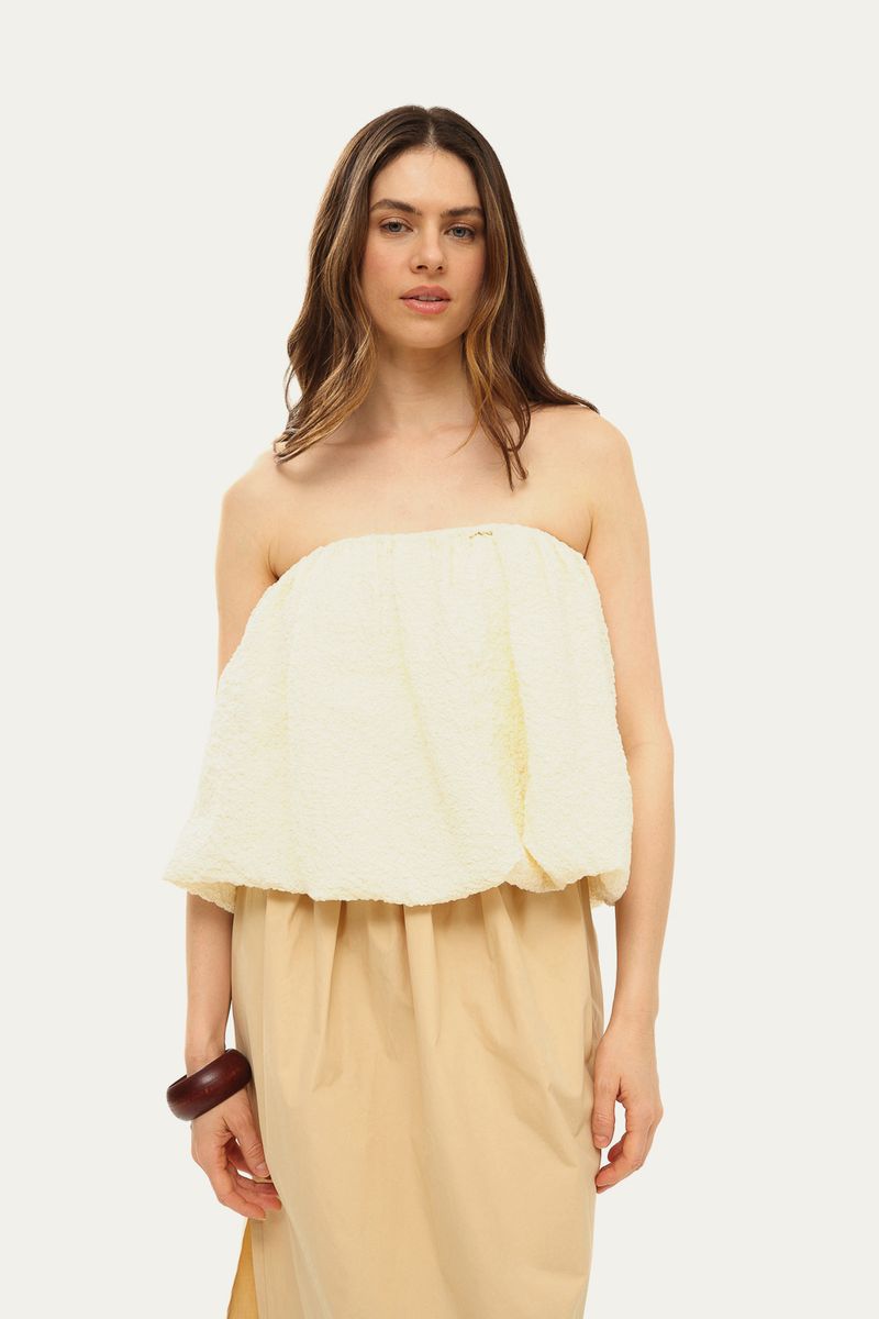 O Top Sorella da marca Framed, é confeccionado em uma exclusiva malha texturizada bouclê, garantindo conforto e um toque agradável. Sua modelagem balonê e volumosa, sem alças e decote reto, oferece um design contemporâneo e versátil para diversas ocasiões. Ideal para quem busca um visual moderno e sofisticado.