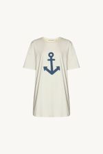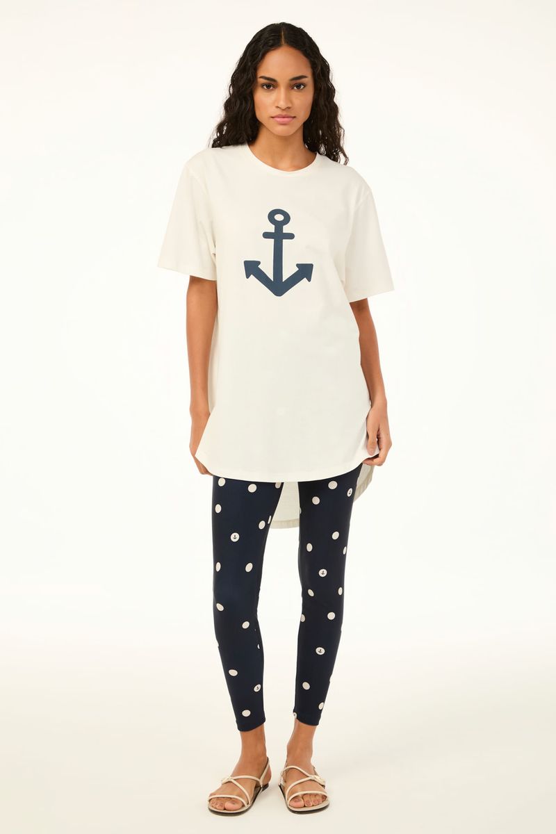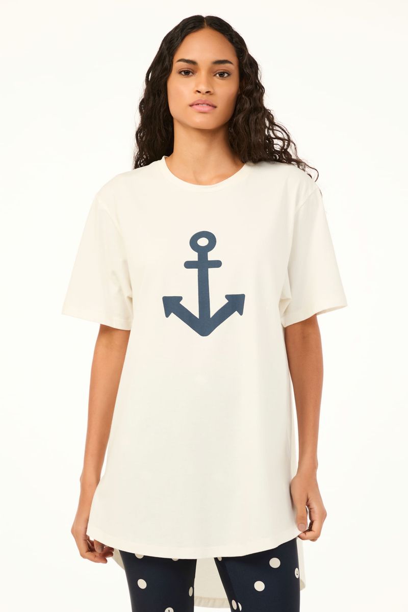 O top Summer CRIS BARROS é super cool. De Raiz, nossa malha de algodão com toque macio, ideal para o dia a dia. Possui decote careca, mangas curtas, silk "âncora" e comprimento posterior bem alongado. Cor:OFF WHITE/NAVY