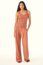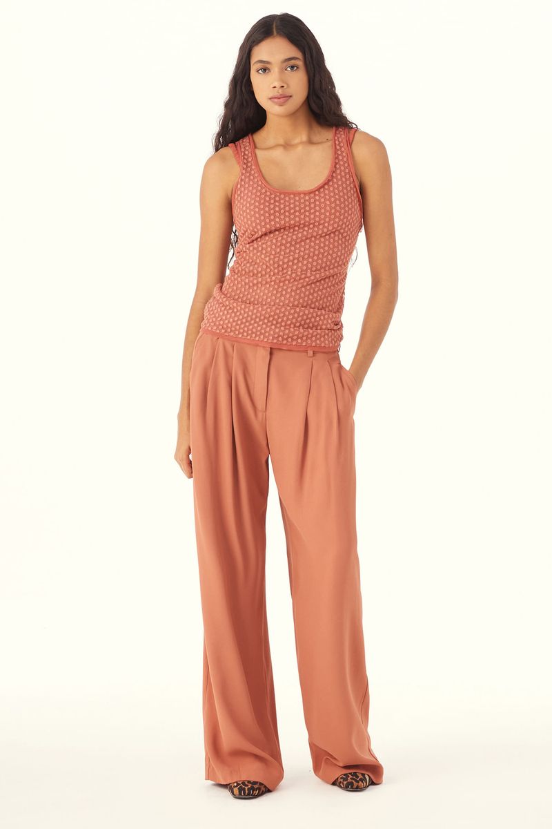 O Top Tali traduz uma modernidade precisa, onde linhas essenciais ganham um gesto sutil de design. Confeccionado em Nouvelle. O decote U é pontuado por tule aplicado no decote e nas cavas, criando leve transparência que delimita a linha do colo e emoldura os ombros, enquanto a construção regata organiza a silhueta com clareza e a peça acompanha sutiã de malha para sustentar o uso com conforto e acabamento limpo, assinatura CRIS BARROS em equilíbrio entre o simples e o sofisticado.