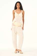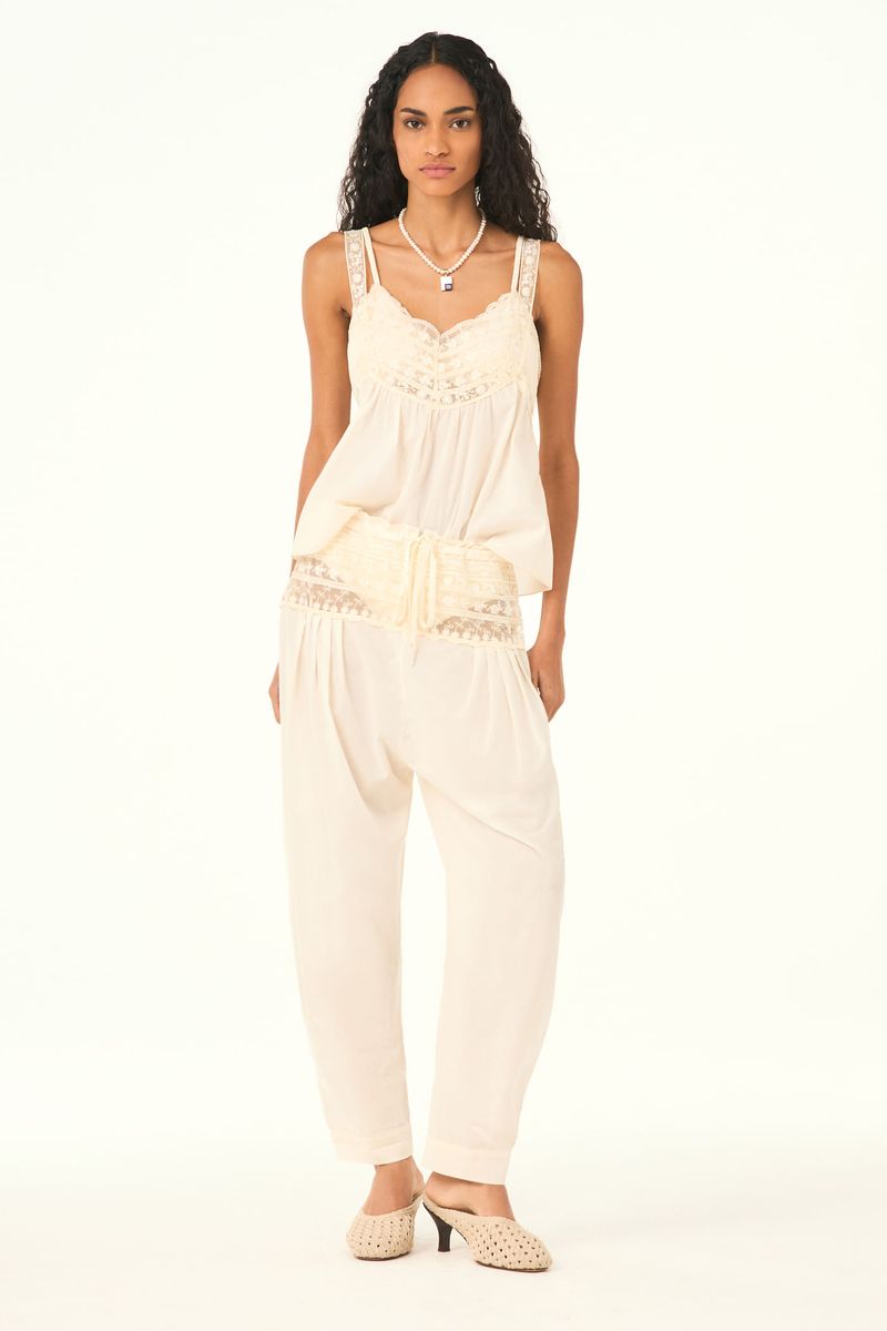 O top Thaisa CRIS BARROS é cool e delicado. De Bartô, algodão 100%, possui fibras naturais e biodegradáveis, tratado com produtos certificados OEKO-TEX , inofensivos para as pessoas e o meio ambiente. Possui shape evasê, decote coração com aplicação de entremeios e alças largas. Acompanha sutiã com aplicação de entremeio no decote.