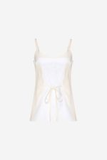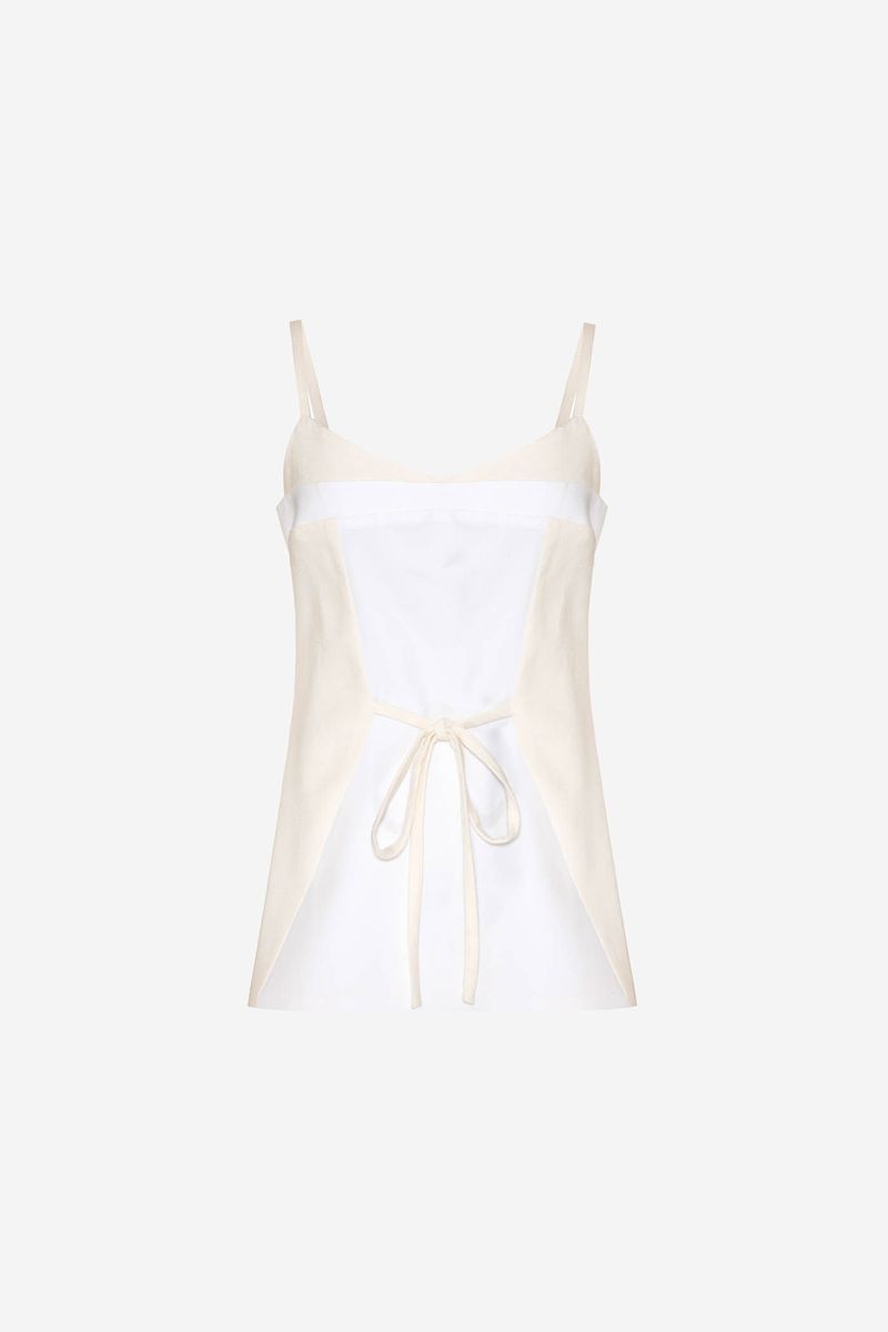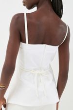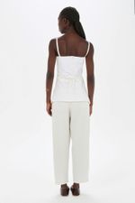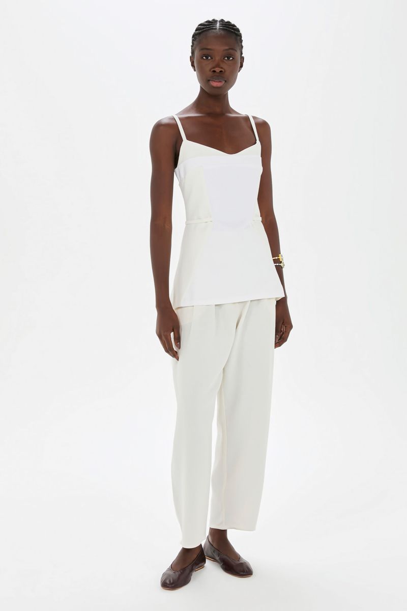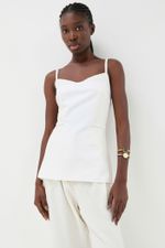 O top Tulum CRIS BARROS é elegante e estiloso. De Tripoli, nosso algodão encorpado com elastano, super confortável para uso diário. Possui shape justo e estruturado, alças finas, decote V, rolote de amarração na região da cintura, recortes com detalhes de Jacarta que modelam o corpo e comprimento alongado.
