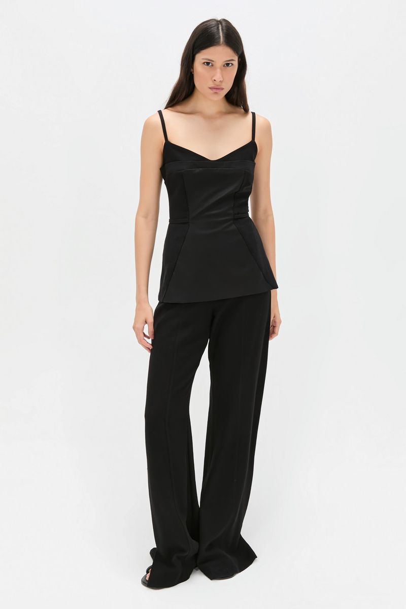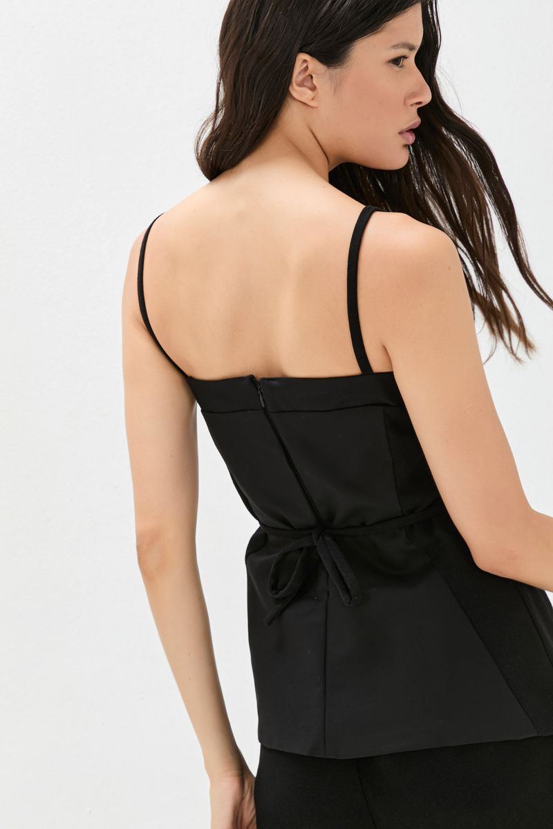 O top Tulum CRIS BARROS é elegante e estiloso. De Tripoli, nosso algodão encorpado com elastano, super confortável para uso diário. Possui shape justo e estruturado, alças finas, decote V, rolote de amarração na região da cintura, recortes com detalhes de Jacarta que modelam o corpo e comprimento alongado.