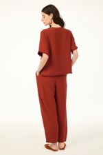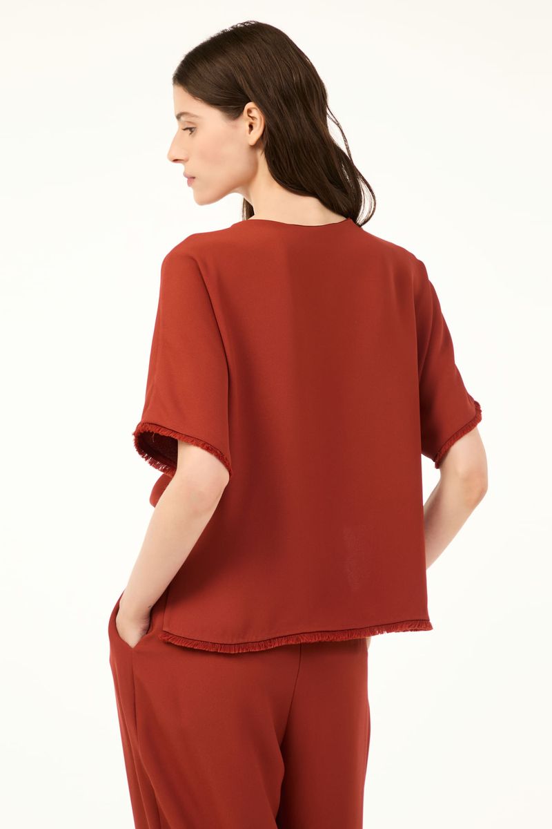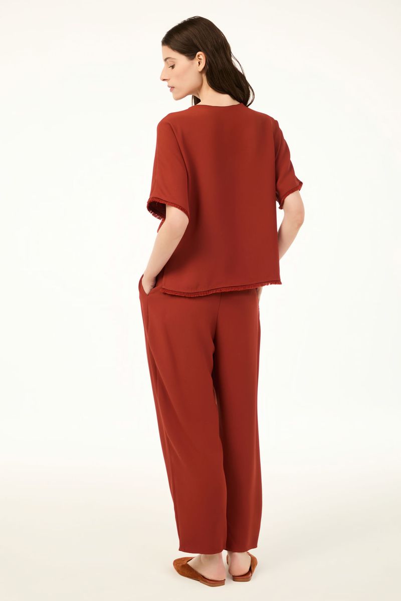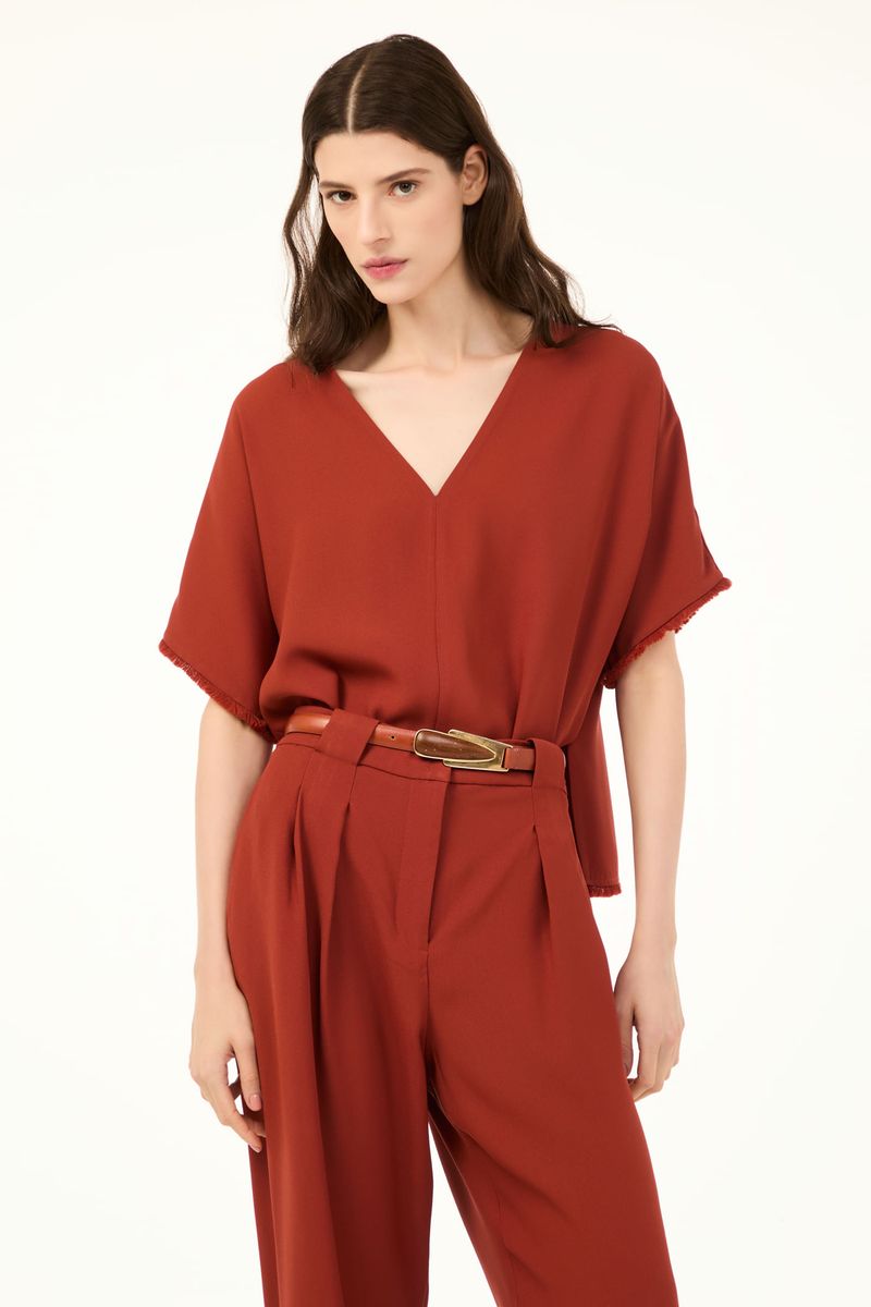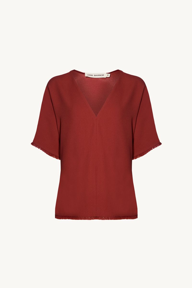 O top Viola CRIS BARROS é fresh e estiloso. De Avalon, nosso tecido clássico, encorpado e fluido, perfeito para alfaiataria e que possui certificação FSC, com maior responsabilidade ambiental, suas fibras são feitas a partir do manejo sustentável de áreas reflorestadas. Possui shape reto, mangas curtas, decote V com detalhe de aplicação peluciada na boca das mangas e na barra.