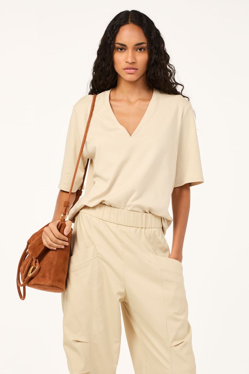 O top Vivaz CRIS BARROS é um básico must have. De Ieda, malha super confortavél. Possui shape reto, mangas curtas e decote V.