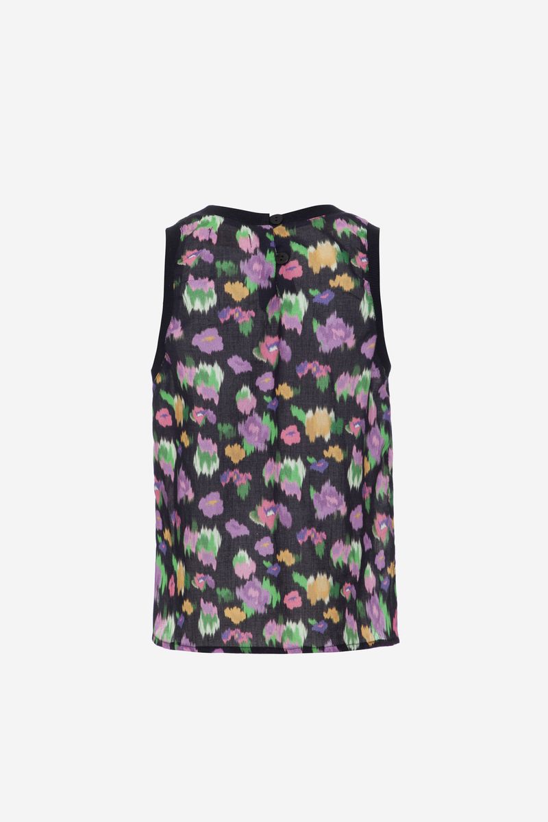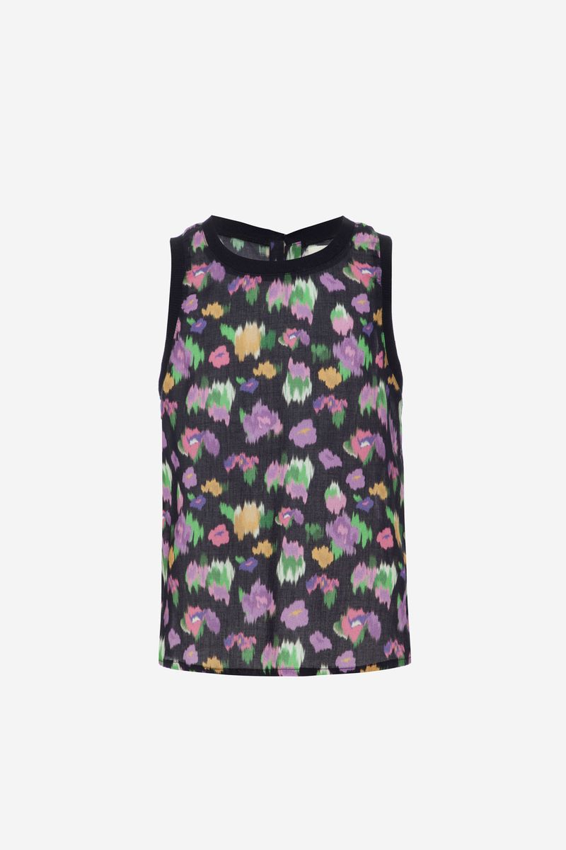 O Top Yoki Mini CRIS BARROS é confeccionado em Lavínia, nosso tecido exclusivo. A peça possui modelagem reta, decote arredondado, detalhe de malha de ribana no decote e nas cavas. E fechamento posterior com abotoamento central.