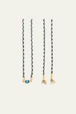 Tornozeleira Fio Cordinha com Topázio London e franjas mista na ponteira em ouro 18k.