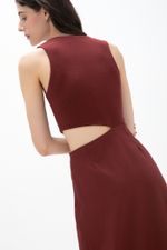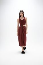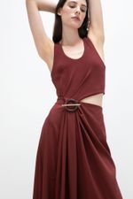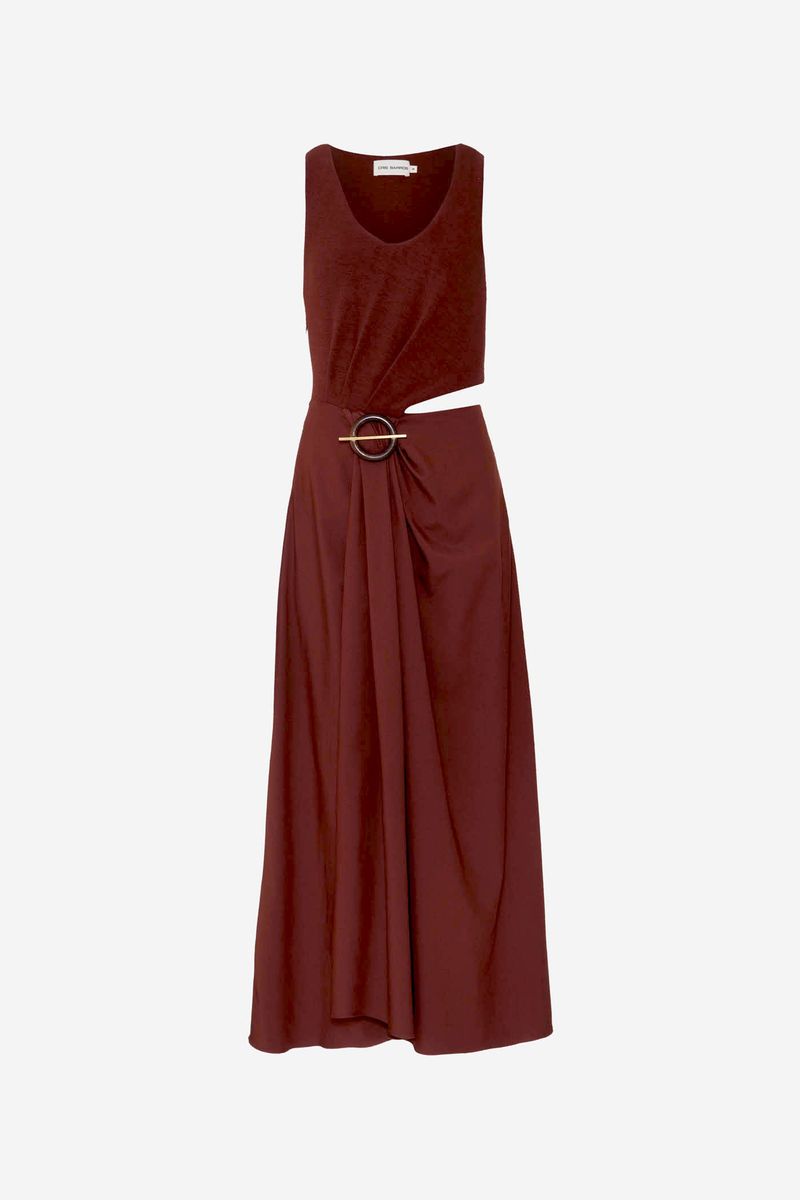O vestido Abaporu CRIS BARROS é elegante e estiloso. De Amore, tecido misto de modal e elastano, com um leve brilho em sua trama, que conta com um ar clássico conta aspecto tecnológico. Possui alças largas, decote U, corpo de Marjorelle, saia longuete evasê com barra levemente assimétrica com recorte na cintura e aviamento jóia diferenciado lateral, com detalhe circular de madeira e alfinete transversal banhado à ouro.