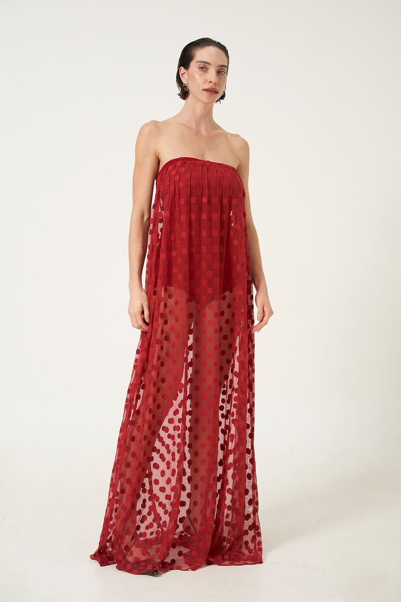 42 - Busto: 94cm - Cintura: 94cm - Comprimento: 144cm.