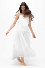 O vestido Alexandra CRIS BARROS é marcante e inusitado. De Dalila, tecido com bordado metalizado corrido de paisleys e detalhes florais. Possui shape solto, decote V profundo, com fechamento por botão interno, mangas morcegos, cintura marcada e comprimento longuete. Acompanha top e hot pants.