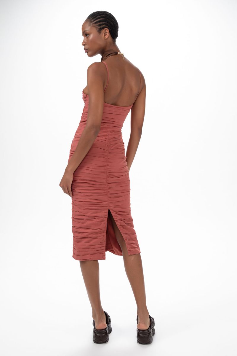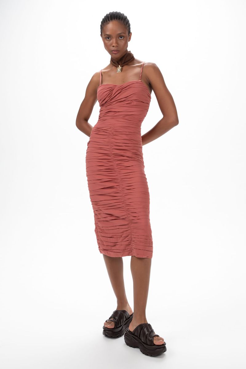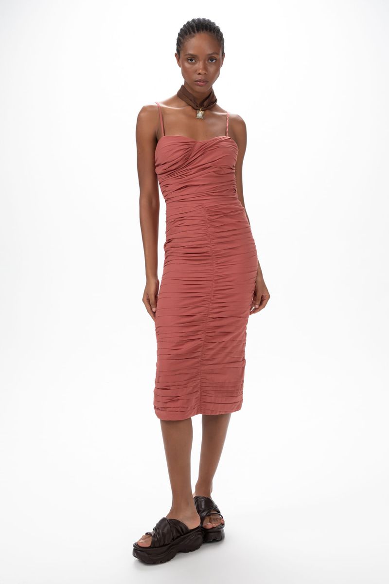 O vestido Ariana CRIS BARROS é escultural. De Bartô, tecido natural 100% algodão, leve e versátil. Possui alças finas, decote coração transpassado, cintura marcada, shape justo e corpo todo drapeado, saia longuete reta, fenda posterior e fechamento por zíper lateral invisível.