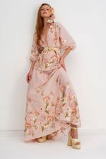 O vestido Beatrice CRIS BARROS é romântico e elegante. De Ventura, voil 100% algodão com barrado floral exótico, bordado e colorido, trazendo contraste de fios foscos e brilhantes. Possui shape evasê com sobreposição, mangas longas com elástico, decote V com rolote para amarração e comprimento longuete.