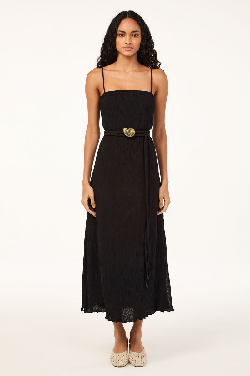 O vestido Cassia CRIS BARROS é clássico e elegante. De Tunisia, tecido misto com toque leve, brilho e caimento perfeito. Possui shape evasê, decote reto, alças finas, fendas laterais. Acompanha cordão com aviamento jóia caracol, banhado à ouro, design exclusivo, desenvolvido em nosso atelier.