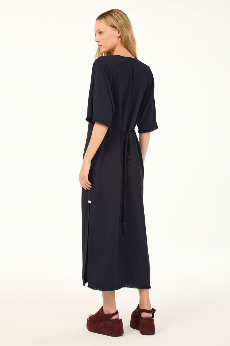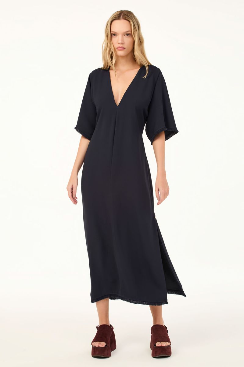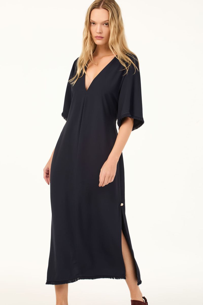 O vestido Cristina CRIS BARROS é fresh e estiloso. De Avalon, nosso tecido clássico, encorpado e fluido, perfeito para alfaiataria e que possui certificação FSC, com maior responsabilidade ambiental, suas fibras são feitas a partir do manejo sustentável de áreas reflorestadas. Possui shape reto, mangas curtas, decote V, fendas laterais com aviamento hera aplicado no inicio da fenda, rolote para amarração na cintura, detalhe peluciado nas bocas das mangas e da barra e comprimento midi.