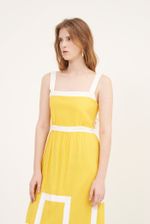 Vestido longo em tecido plano com toque de linho.