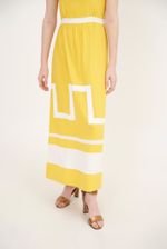 Detalhe em listras geométricas na barra.